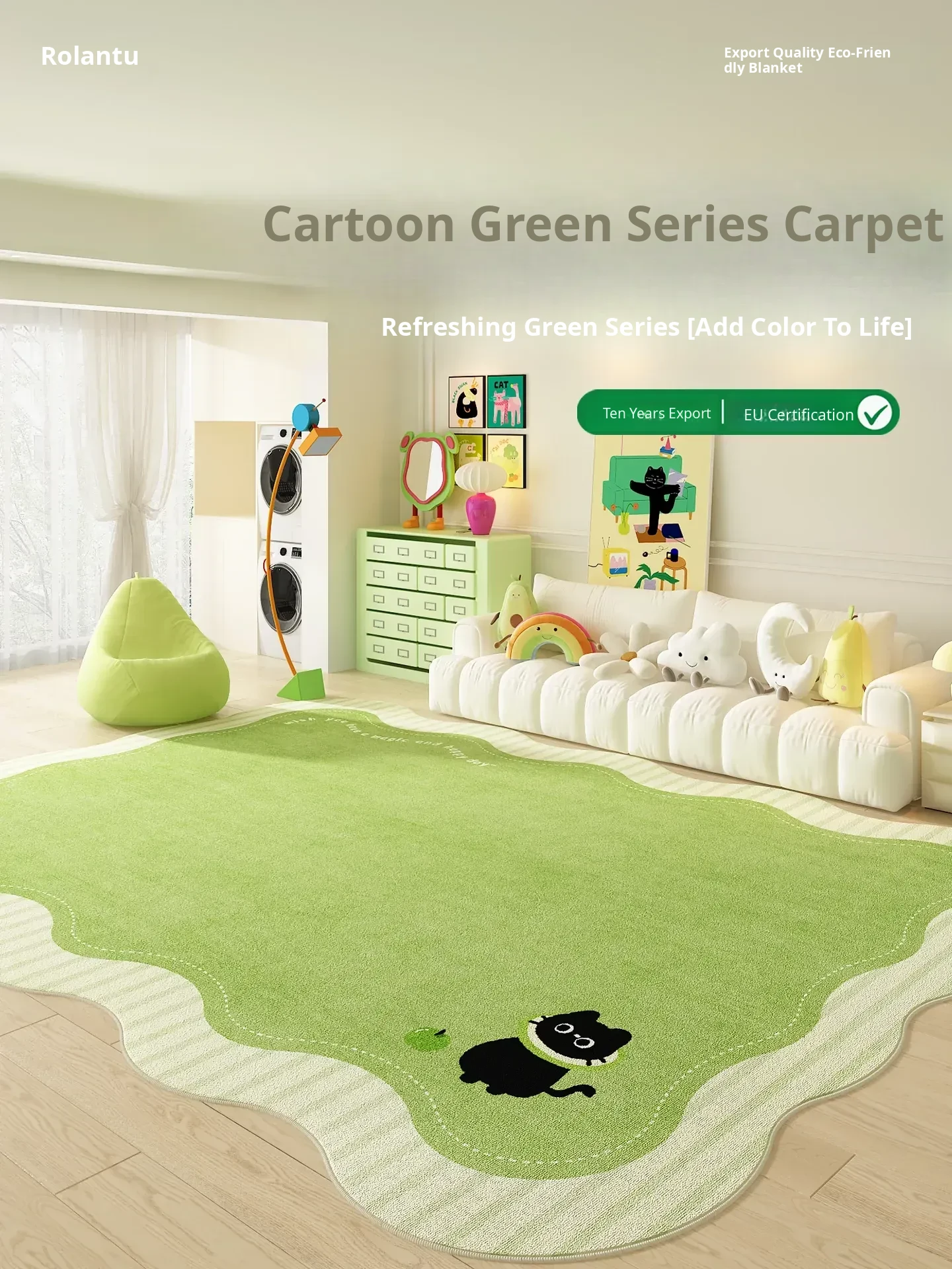 2025 New Waterproof and Stain-Resistant Green Carpet for Living Room - Effortless Care, French Style Sofa and Coffee Table Design, Perfect for Creamy Bedroom Aesthetic by the Bed