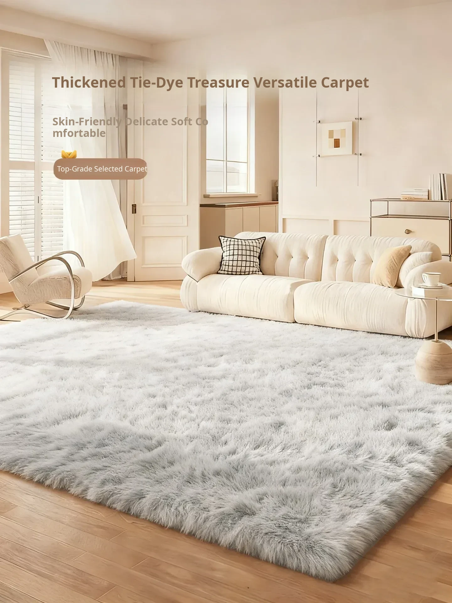 Luxurious French Style Cream Carpet for Living Room - No Wash, Easy to Clean, Water-Resistant & Stain-Resistant, Perfect for Sofa & Coffee Table - 2025 New Arrival