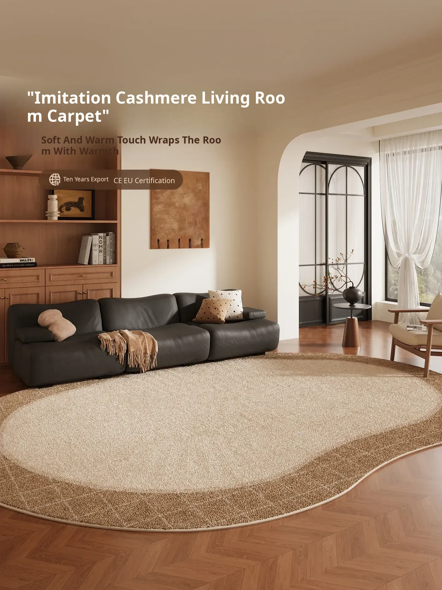 Luxury Waterproof and Stain-Resistant Vintage Style Area Rug for Living Room – No Wash, Easy Clean, Thick Sofa and Bedroom Bedside Mat, Unique Shape
