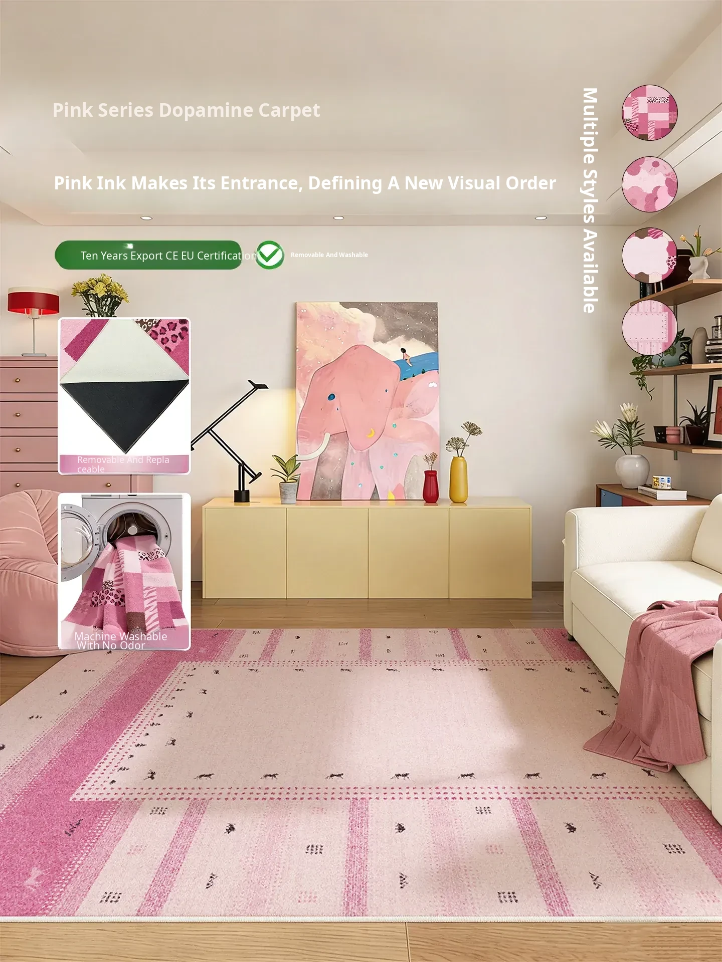 French Chic Washable Vintage Area Rug - Waterproof & Stain-Resistant for Living Room - 2025 New Creamy Aesthetic Collection