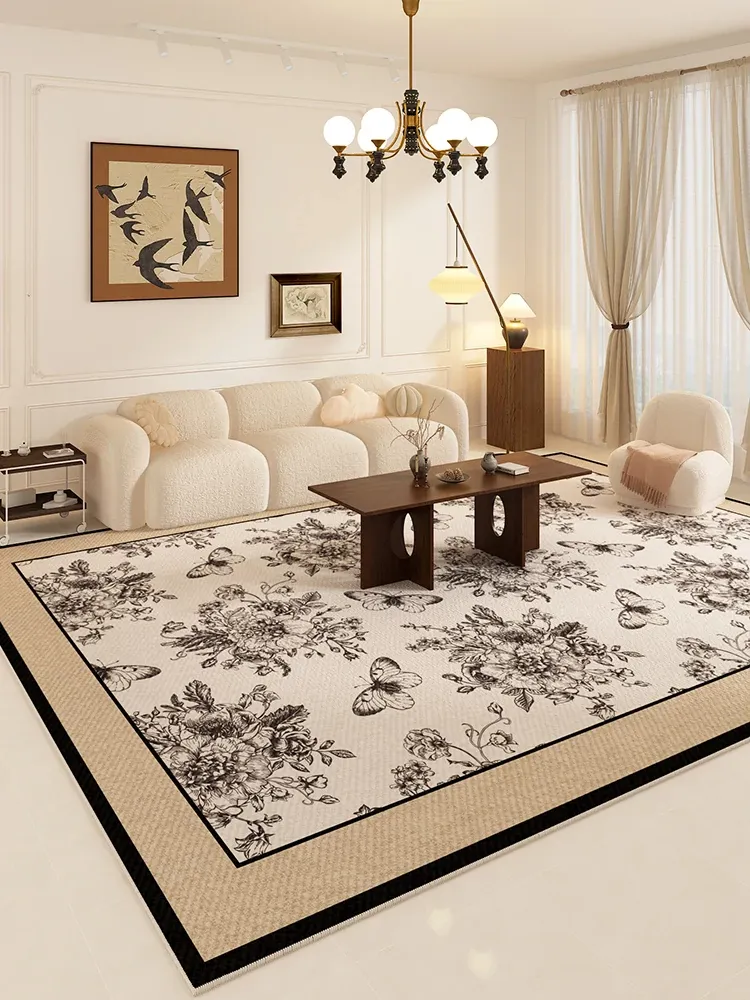 Elevate Your Living Room with Our Elegant Vintage-Inspired Carpet: Luxurious, Easy-Clean, and Soundproof Bedside Mat for a Cozy Home Atmosphere – Perfect for Sofas and Coffee Tables!