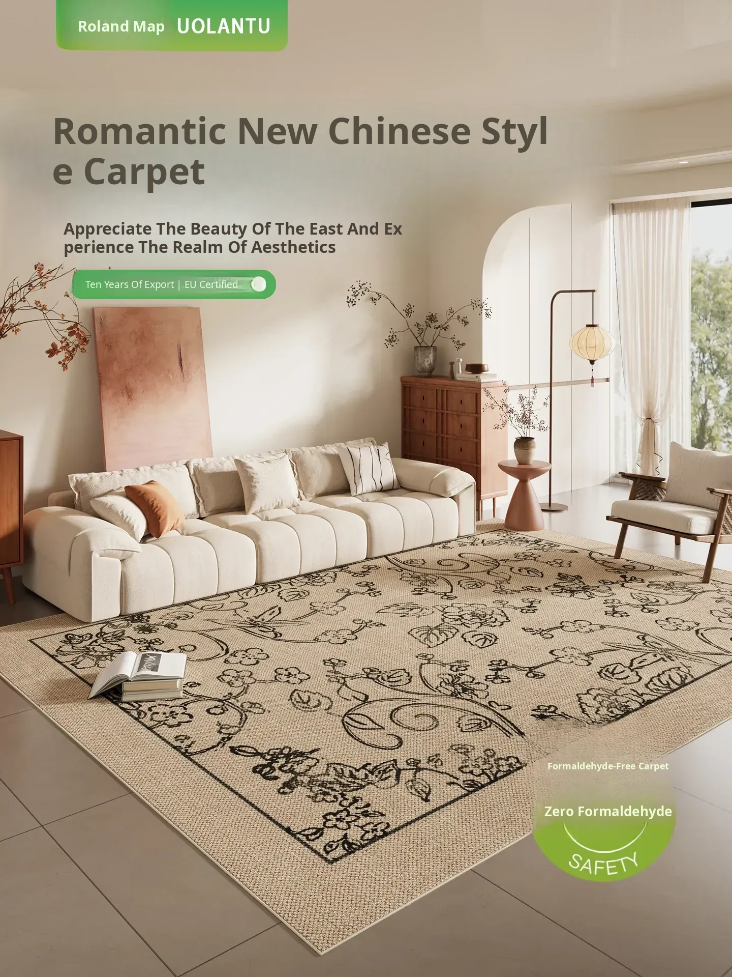 Stylish Green New Chinese Style Living Room Carpet - Elegant Sofa Mat with Song Dynasty Aesthetics, Water-Resistant, Stain-Resistant, and Easy to Clean for a Luxurious Touch.
