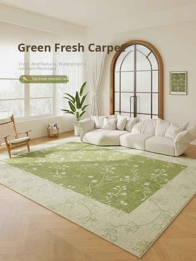 Luxurious Green Living Room Carpet - Waterproof, Stain-Resistant, Easy-Care Tea Table and Sofa Mat, Perfect for Bedrooms and Modern Decor!