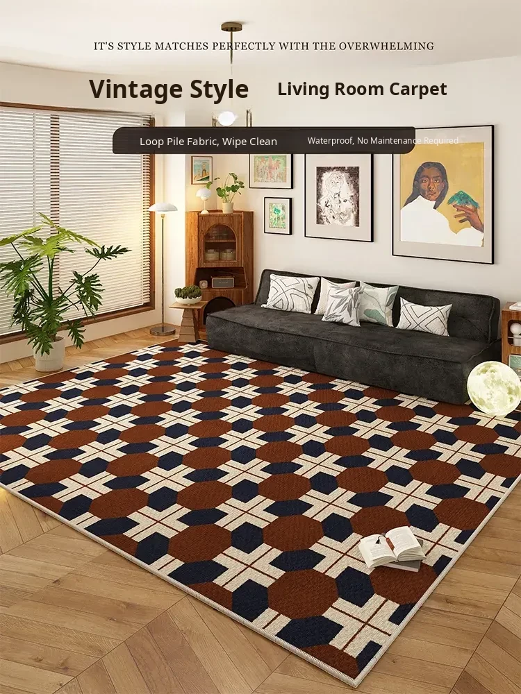 2024 New Vintage Chic Living Room Carpet - American Plaid Sofa and Coffee Table Mat, Non-Slip Bedroom Bedside Rug, Perfect for Elevating Your Home Décor