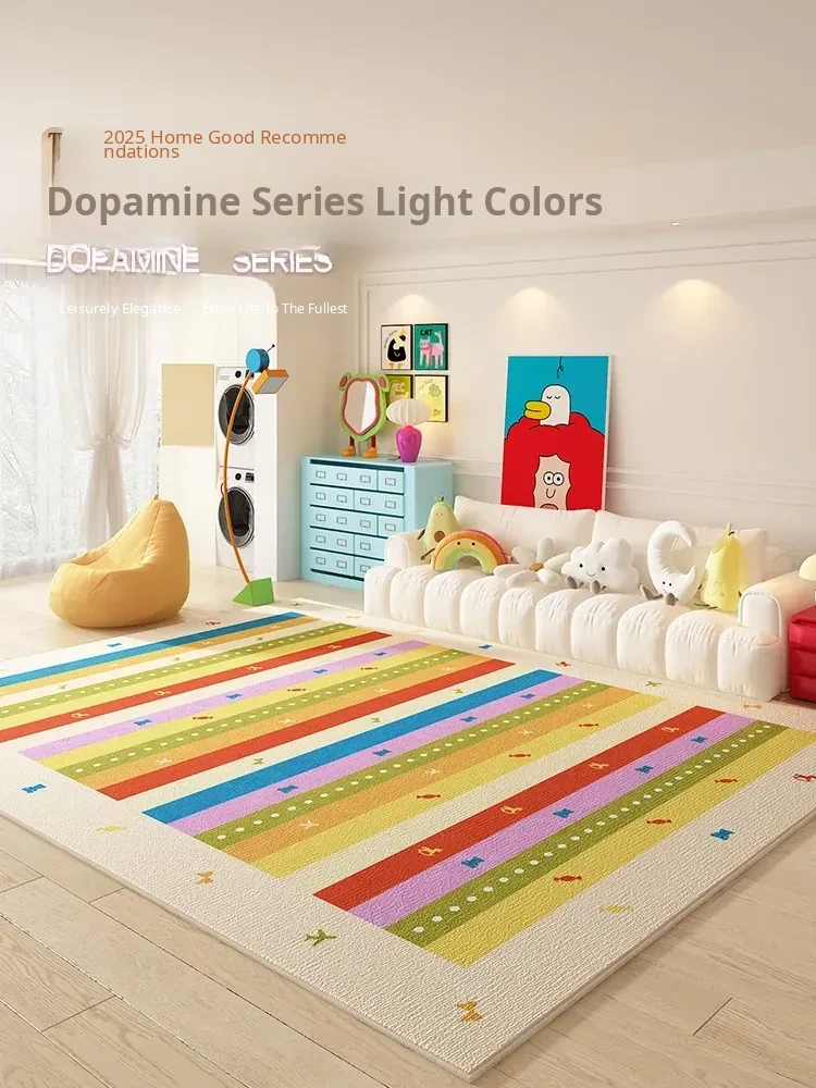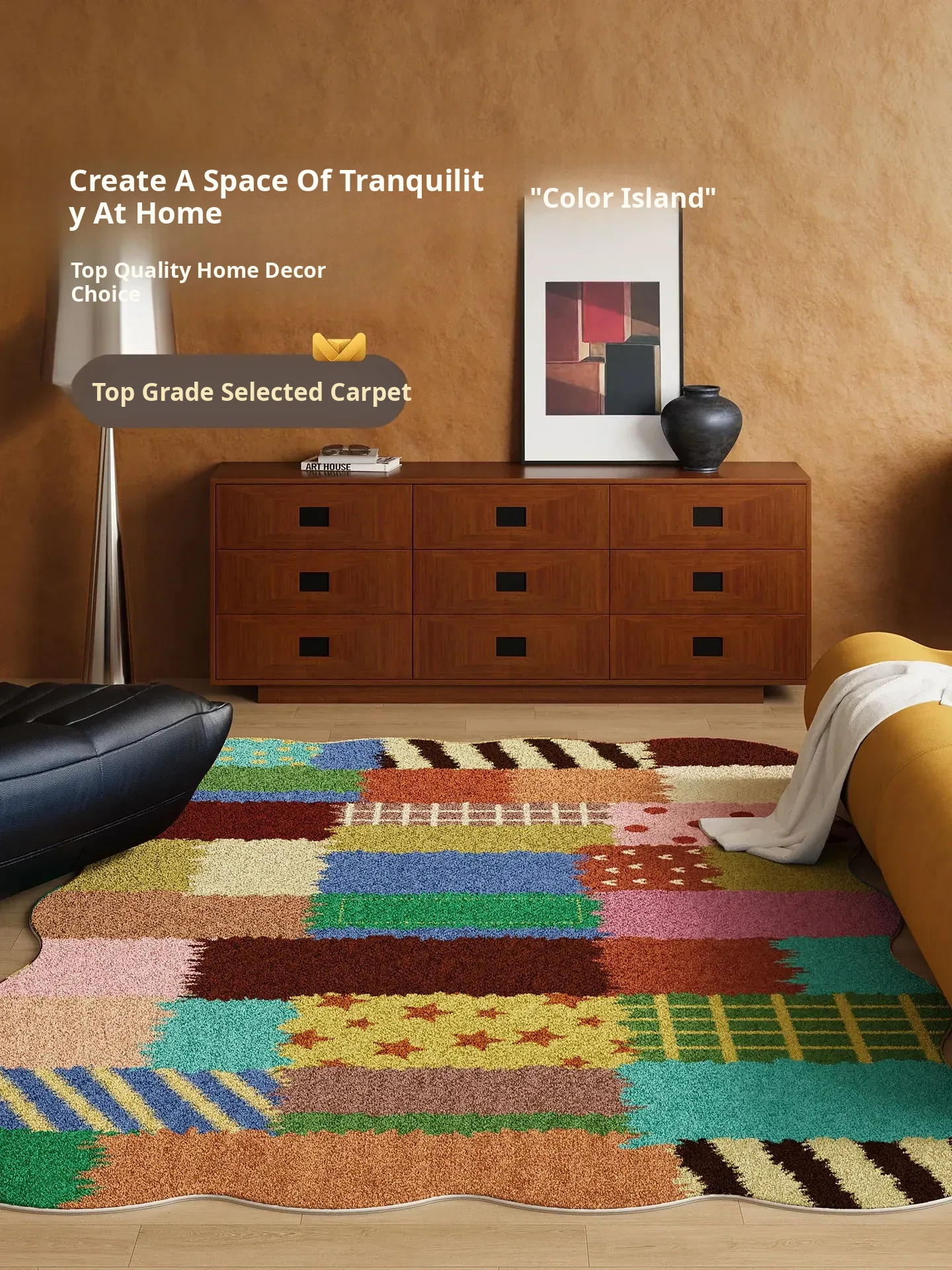 Luxurious Dopamine Art Living Room Carpet - Colorful, Waterproof, Stain-Resistant, Soft Plush Rug for Sofa and Coffee Table, Non-Slip Design, Perfect for Bedrooms - New Arrival!