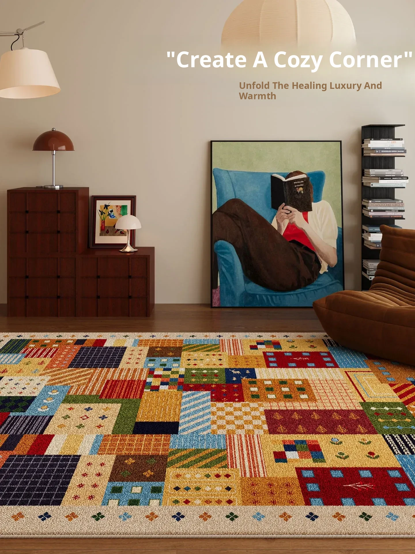 Cozy Winter Dopamine Carpet for Living Room & Bedroom – Plush Thick American Vintage Design, Easy-Care Retro Sofa Mat for a Touch of Elegance