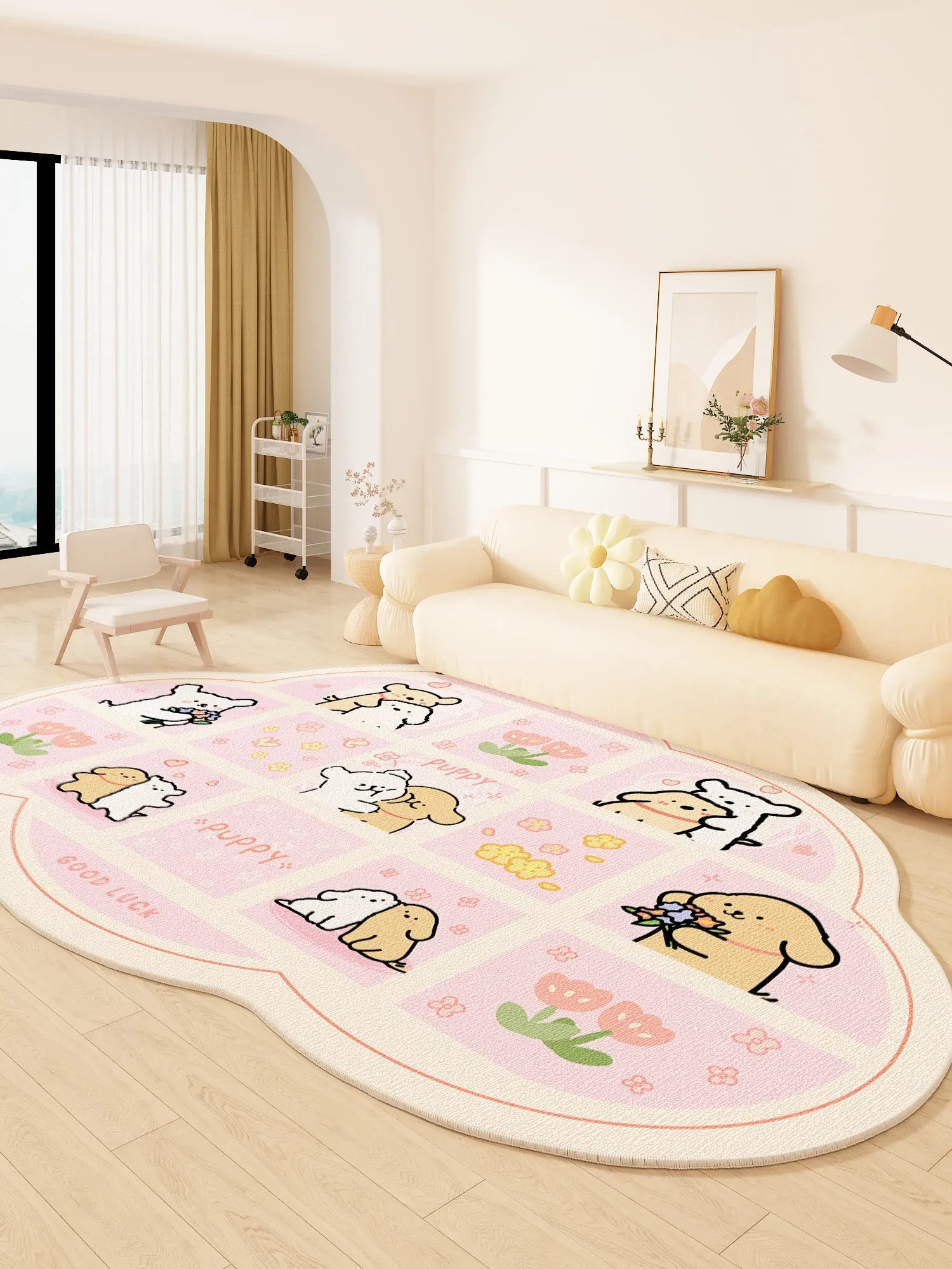 Cartoon Living Room Rug - Waterproof and Stain-Resistant Bedside Mat for Bedroom, No Maintenance Required, Stylish Sofa and Coffee Table Pad, Unique Shape Design