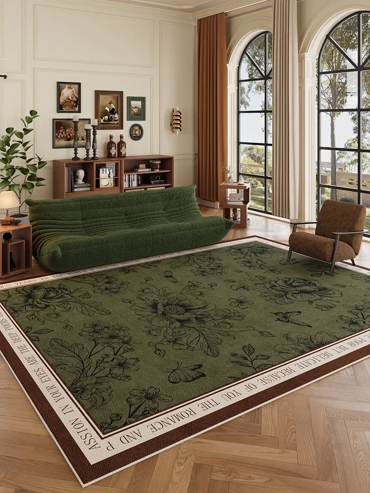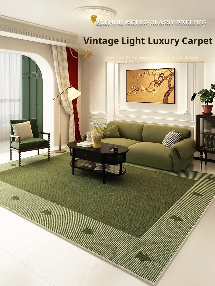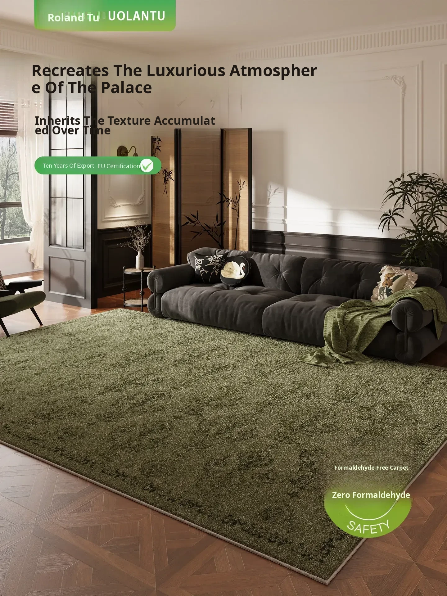 French Vintage Green Luxury Living Room Carpet - Waterproof, Stain-Resistant, Low-Maintenance Bedroom Area Rug - Perfect for Stylish Interiors and Easy Cleaning!