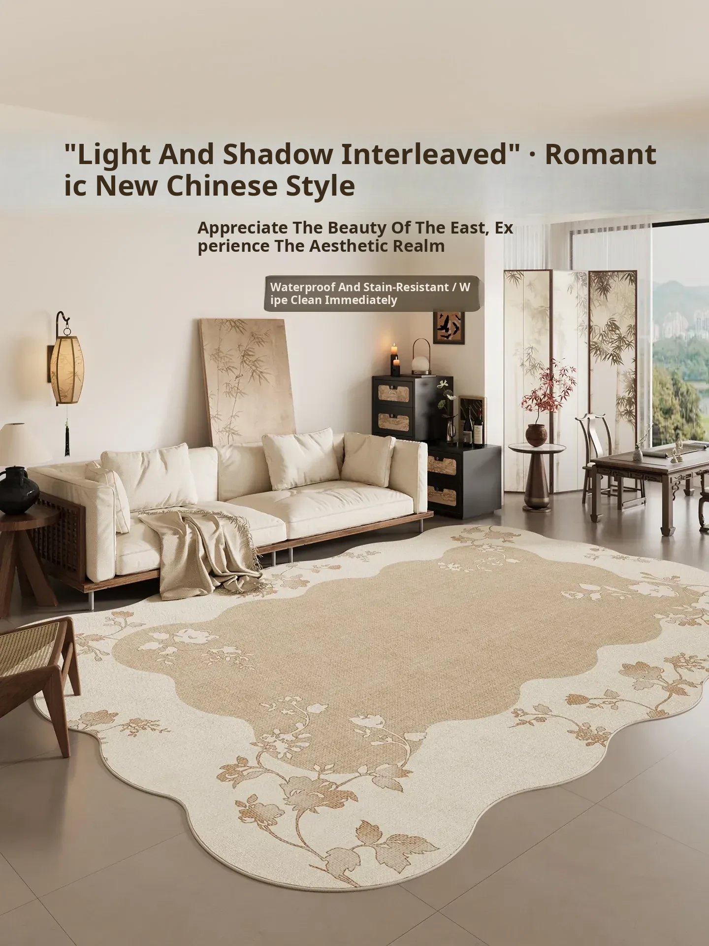 New Chinese Style Carpet for Living Room - Trendy Tea Table and Bedside Mat, Faux Linen Sofa Rug, Wabi-Sabi Aesthetic, Easy to Clean, Waterproof and Low Maintenance for Bedroom