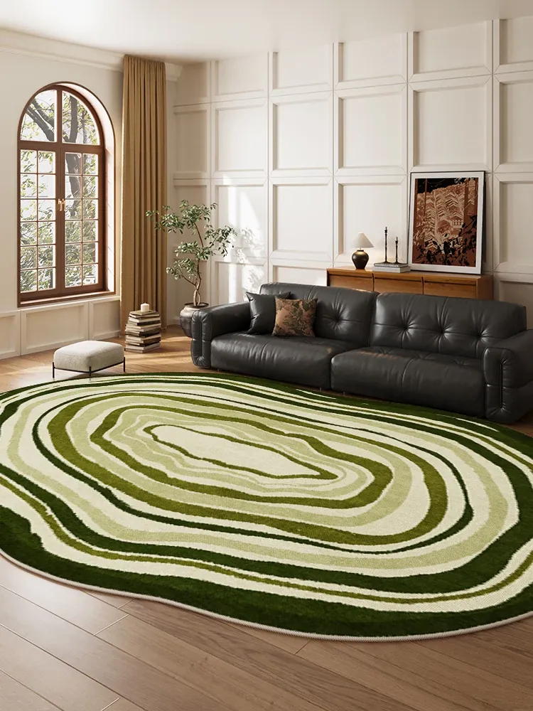 Vintage Green Area Rug for Living Room & Bedroom - Waterproof, Stain-Resistant, Easy Care, No Washing Needed, Perfect for Coffee Tables and Unique Shapes