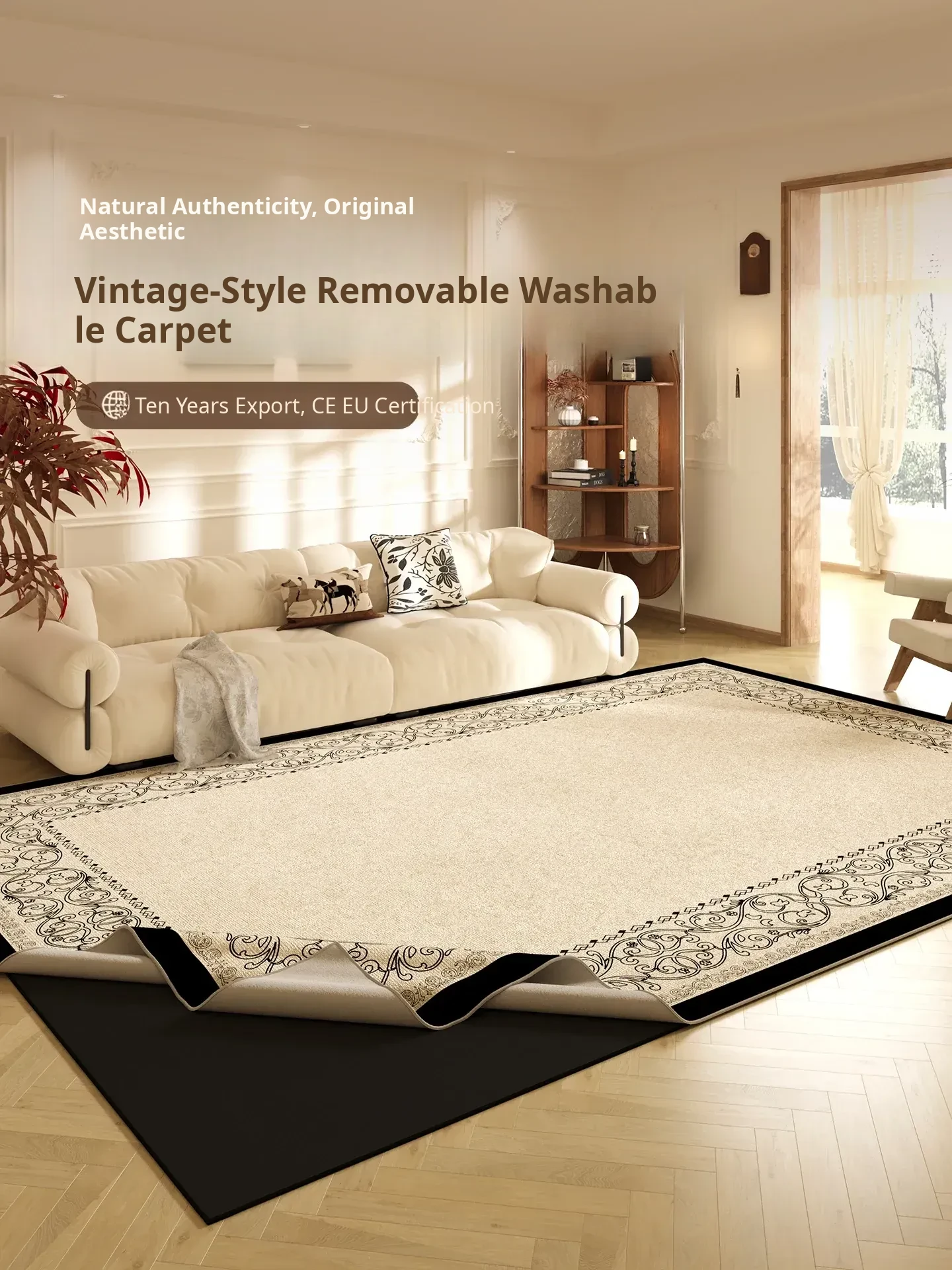 Machine Washable Double-Layer Removable Carpet - Elegant Vintage Style for Living Rooms and Bedrooms, 2025 New French Design Sofa Mat