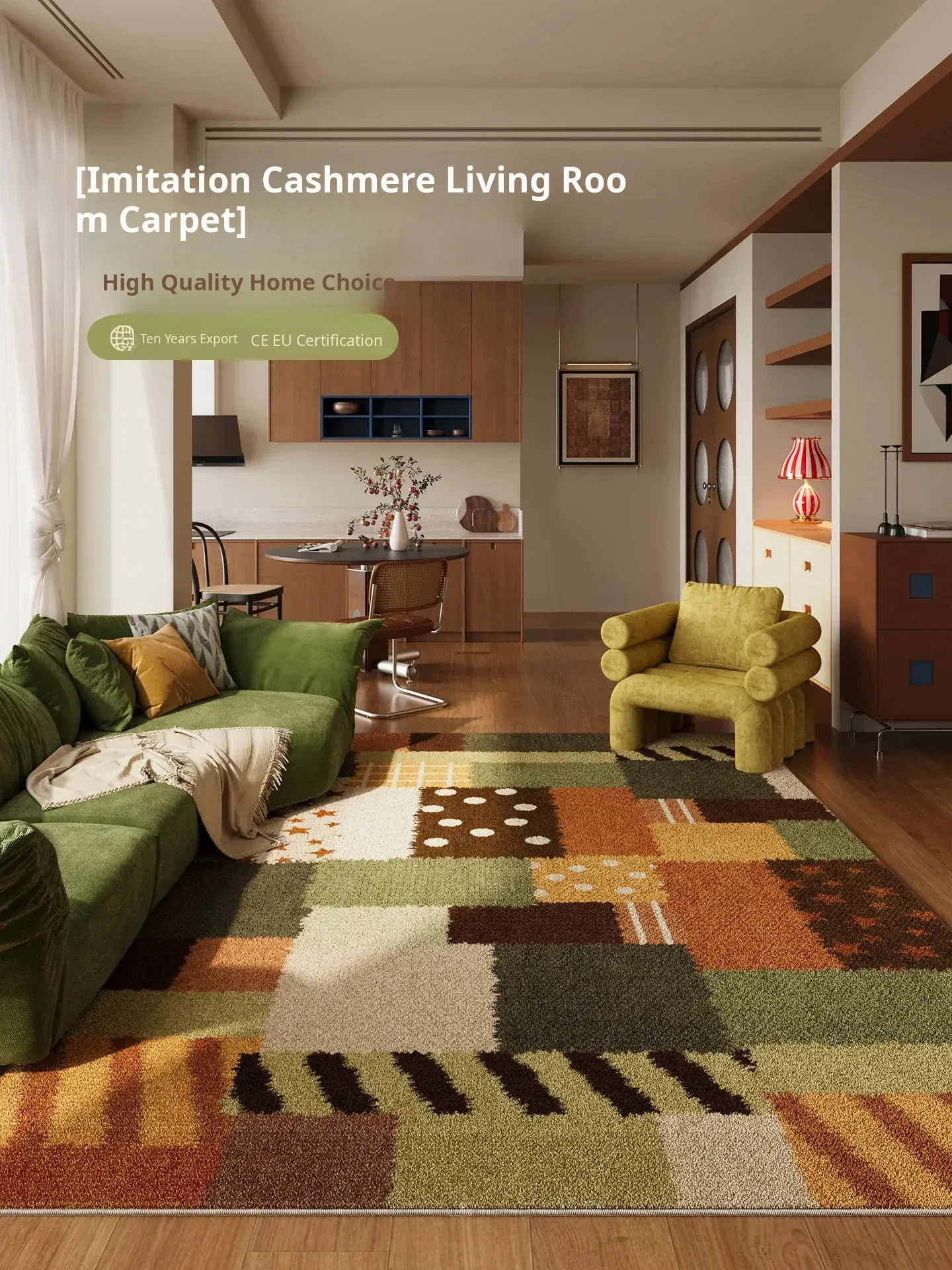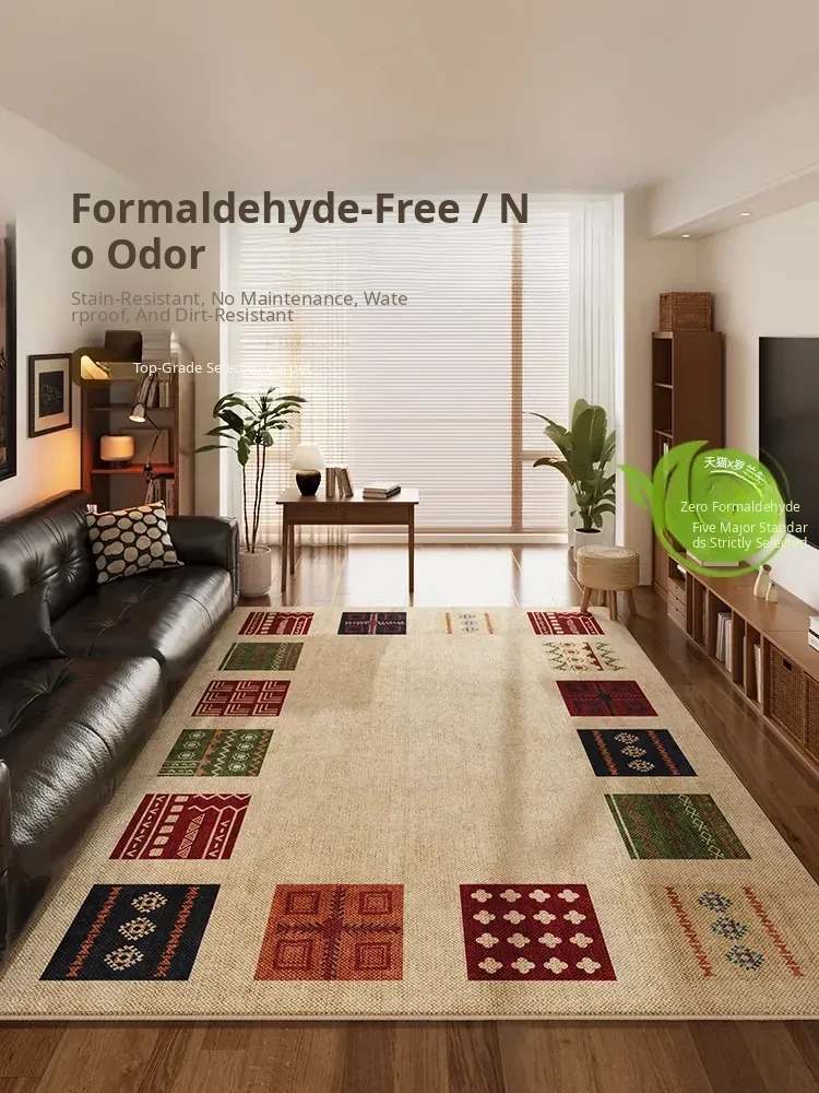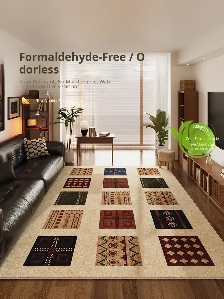 Vintage Style Living Room Carpet - Retro Non-Washable, Easy-Clean Area Rug for Sofa & Coffee Table - Waterproof & Stain-Resistant for a Touch of Elegance
