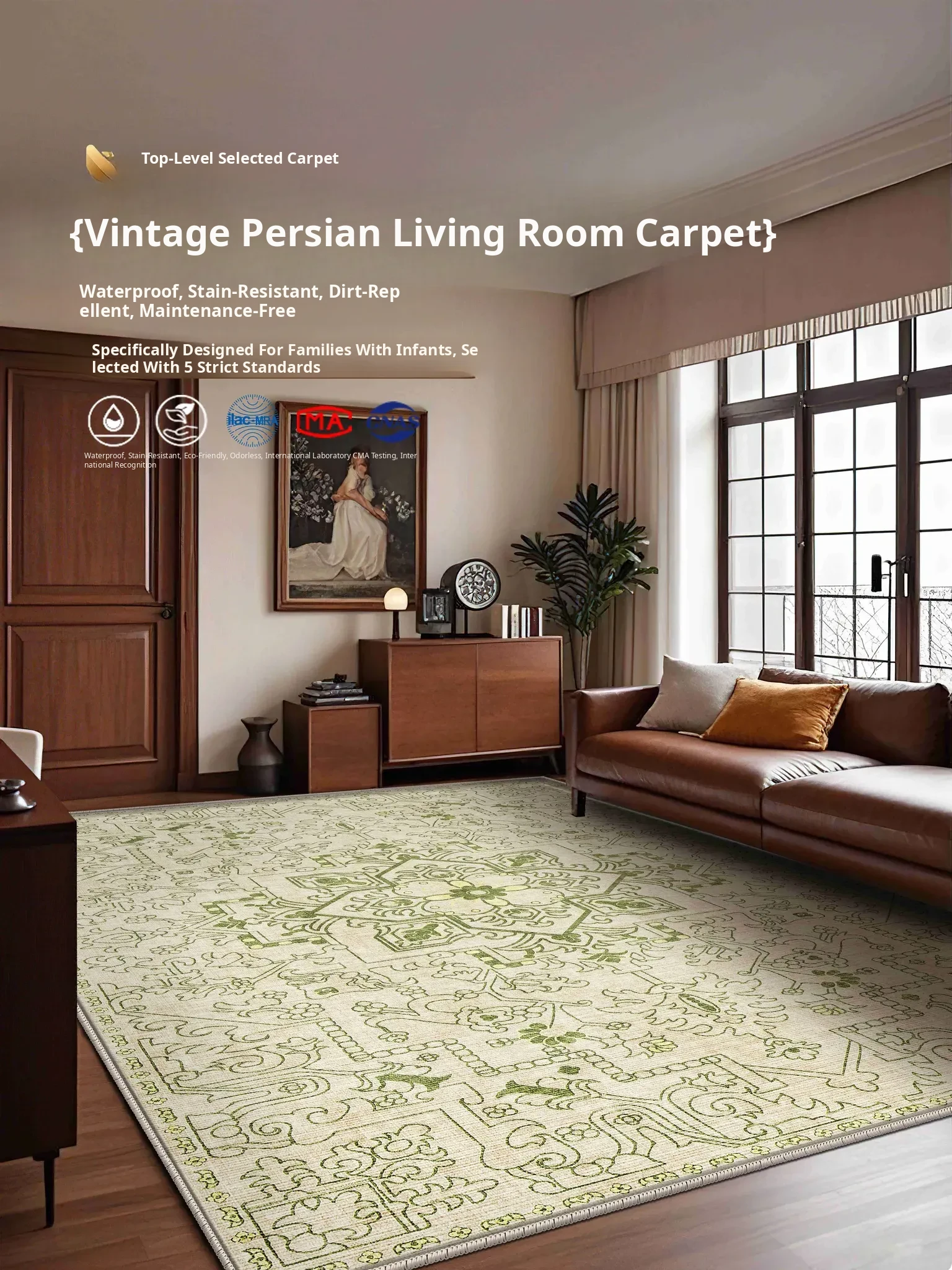 2025 New Vintage Style Waterproof Sofa Carpet - Easy Care, Non-Slip Large Area Floor Mat for Living Room and Bedroom