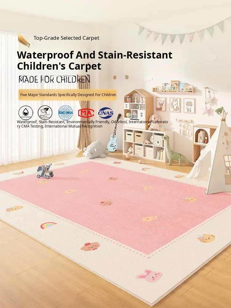 Kids' Bedroom Carpet - Waterproof, Easy-Clean, Non-Slip Play Mat for Living Room and Reading Area, Soundproof Cartoon Design, No Maintenance Required