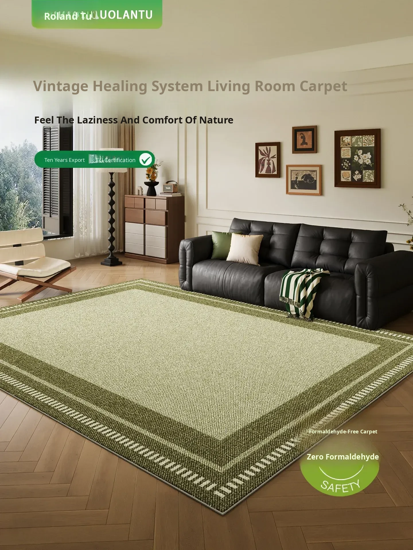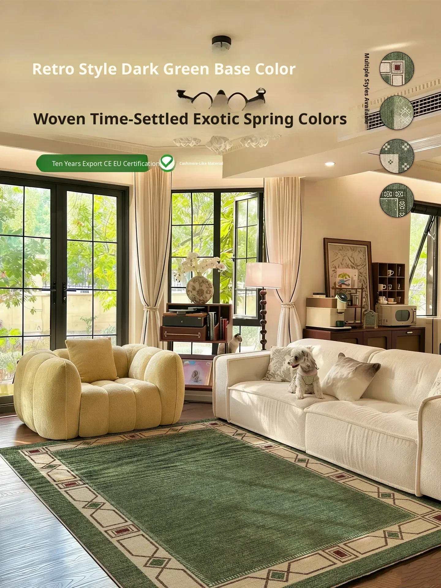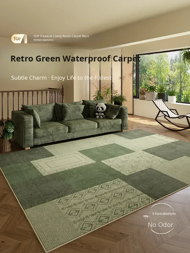 Vintage Green Waterproof Carpet for Living Room and Bedroom - Easy to Clean, No Washing Required, Perfect for Sofa and Coffee Table - New Arrival 2025