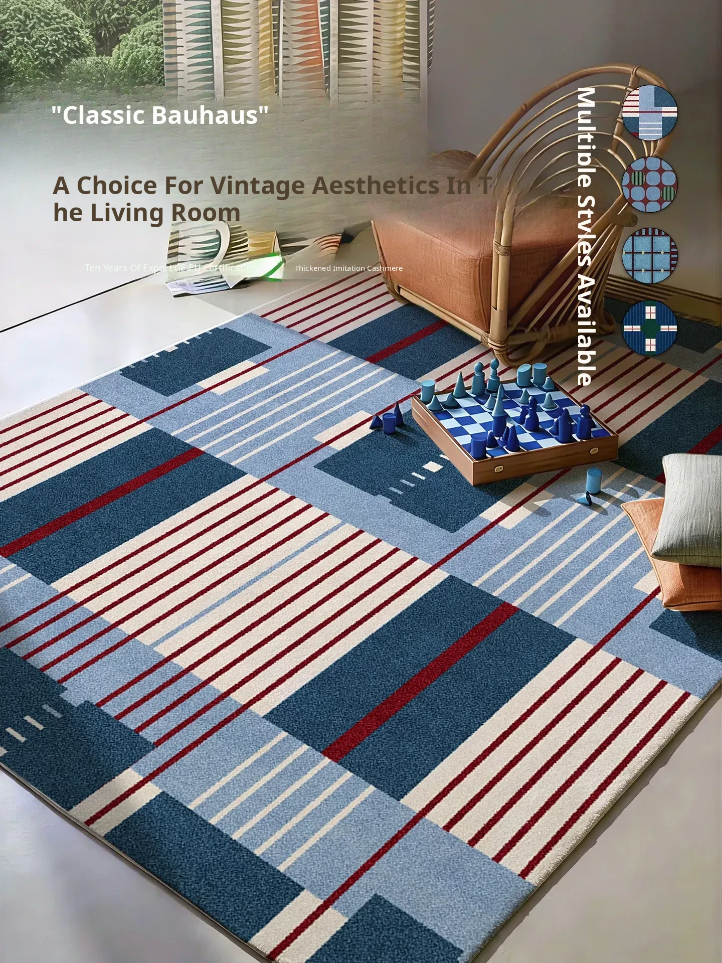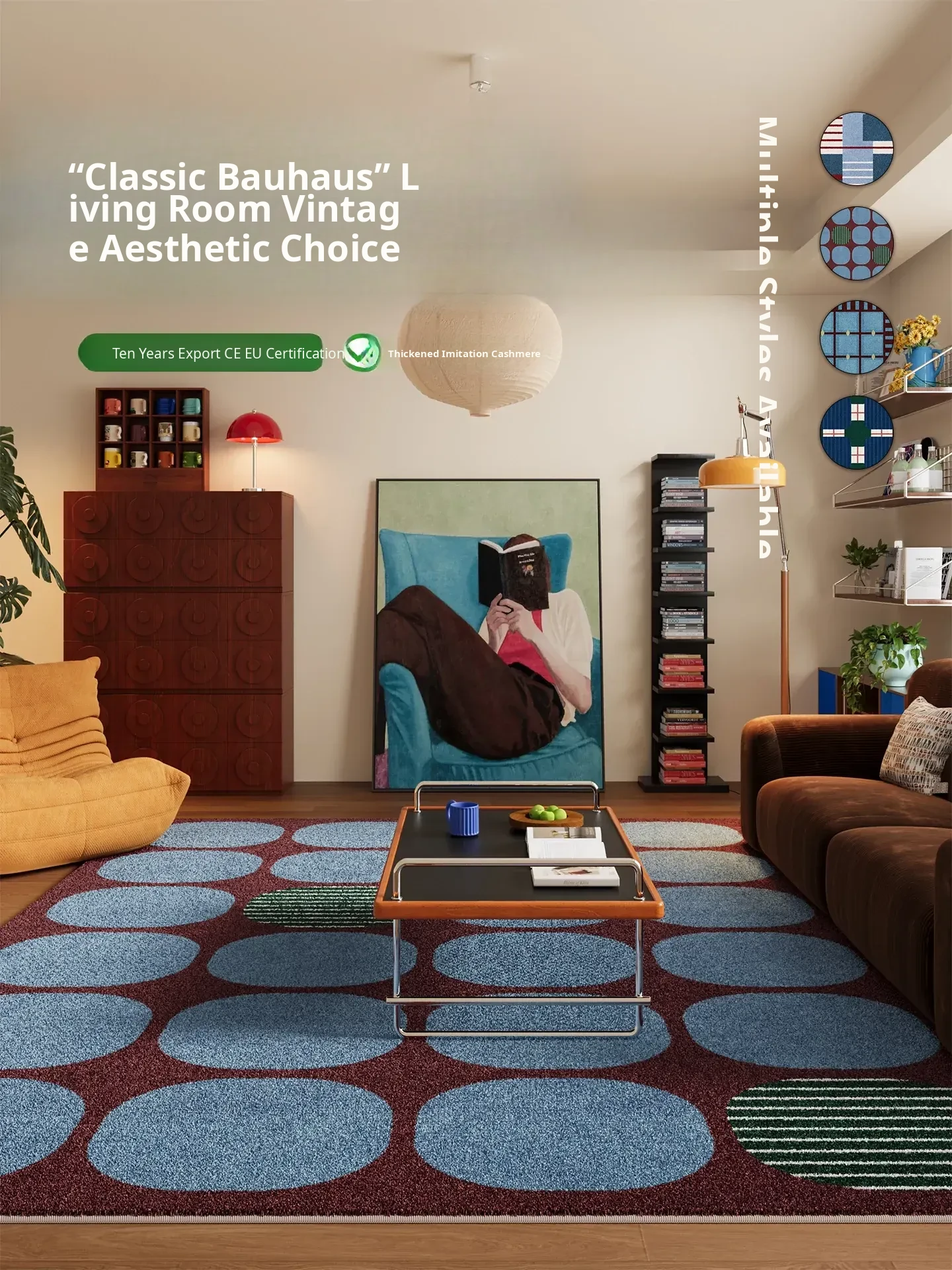 2025 New Vintage-Style Blue Living Room Carpet with Bauhaus Design - Washable and Easy to Clean Bedside Mat, Sofa, and Coffee Table Rug