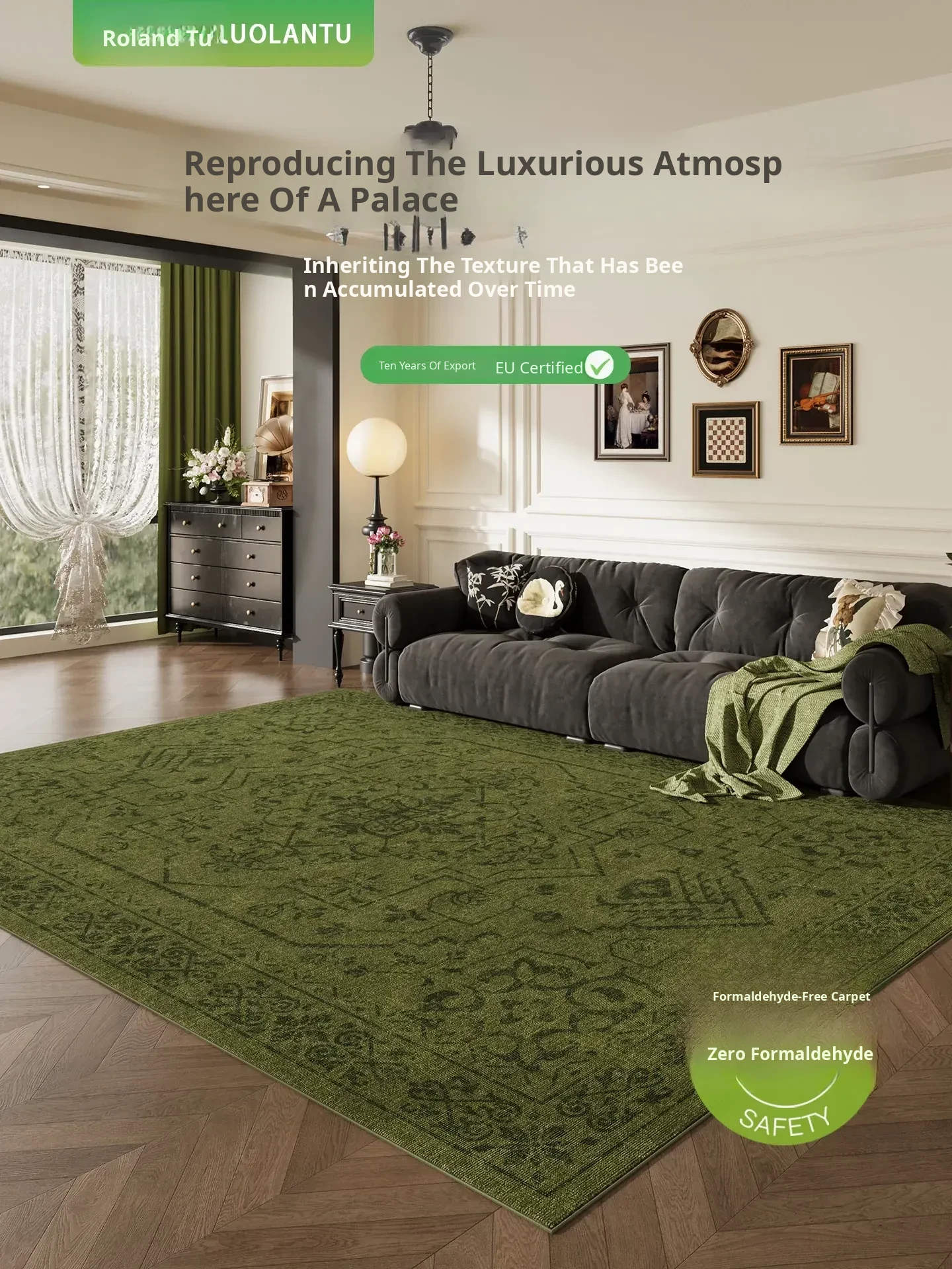 Luxury Waterproof Green Vintage Living Room Carpet - Easy to Clean, No Wash Needed, Perfect for Sofas, Coffee Tables, and Large Bedrooms. Ideal Area Rug for a Stylish Home!