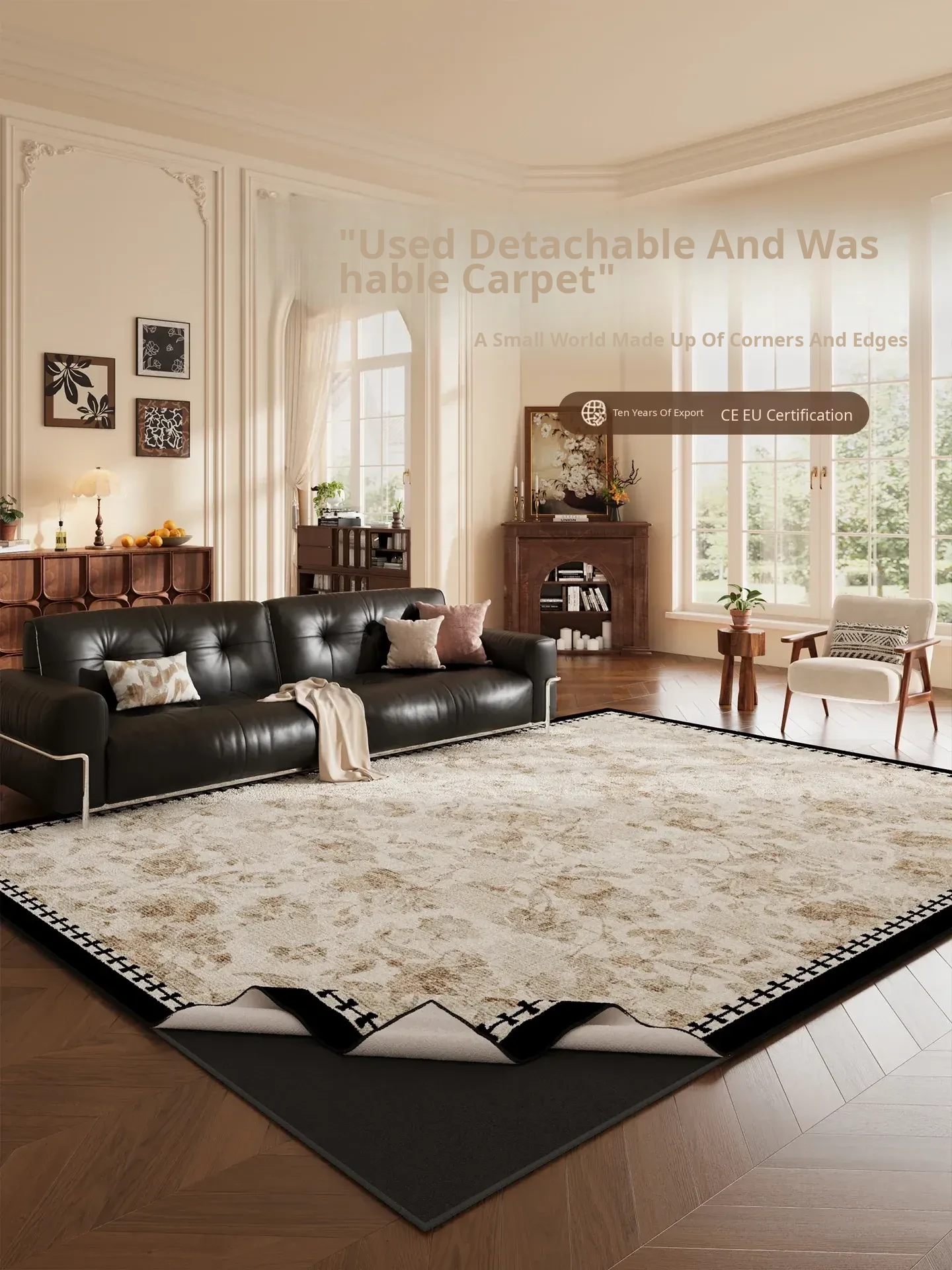 Machine Washable Double-Layer Removable Carpet - Elegant Vintage Style for Living Rooms and Bedrooms, 2025 New French Design Sofa Mat
