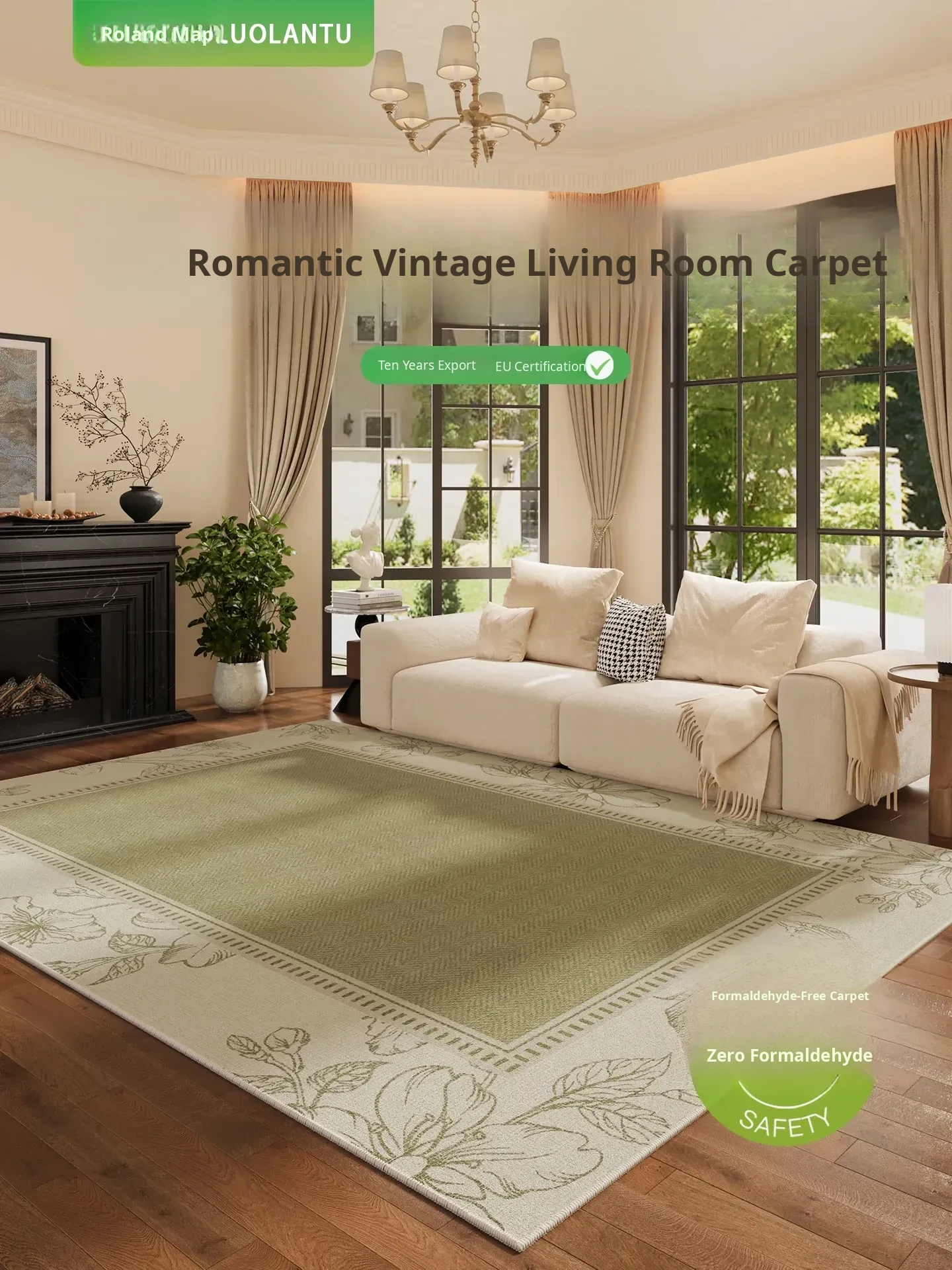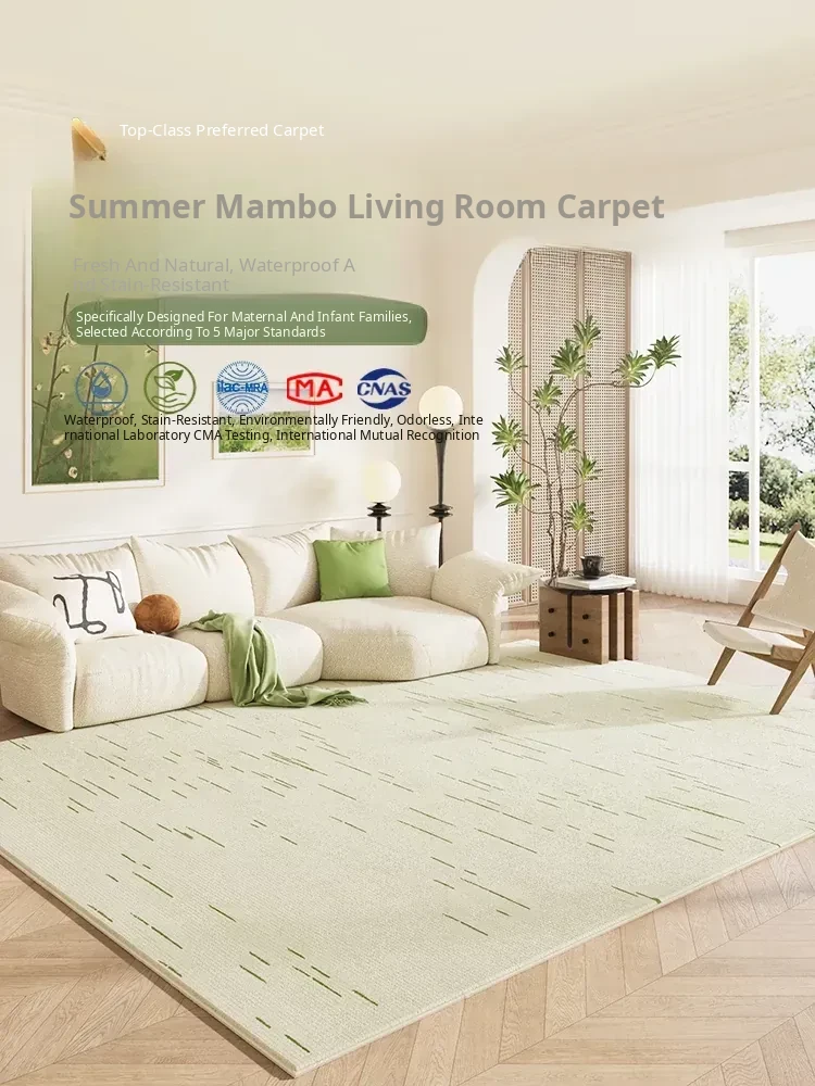 French-American Style Creamy Wind Carpet for Living Room - Green, Easy-Clean, No Wash, 2025 New Waterproof and Stain-Resistant Area Rug, Perfect for Effortless Home Decor