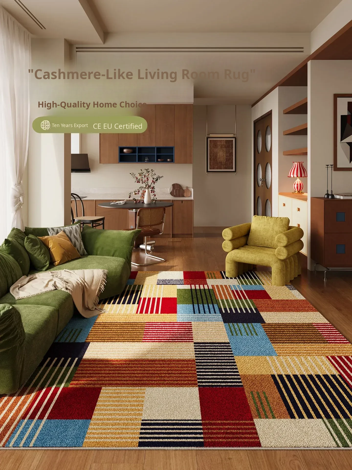 2026 New Colorful Patchwork Carpet for Living Room - Stylish and Easy-to-Clean Non-Washable Area Rug for Bedroom and Home, Perfect for a High-End Feel