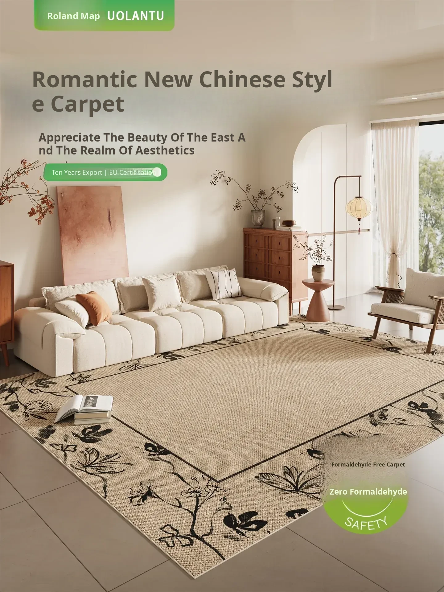 New Chinese Style Retro Carpet for Living Room - Linen-Like, Washable, Waterproof and Stain-Resistant Mat for Bedroom, Elevate Your Home Décor with Luxury Feel