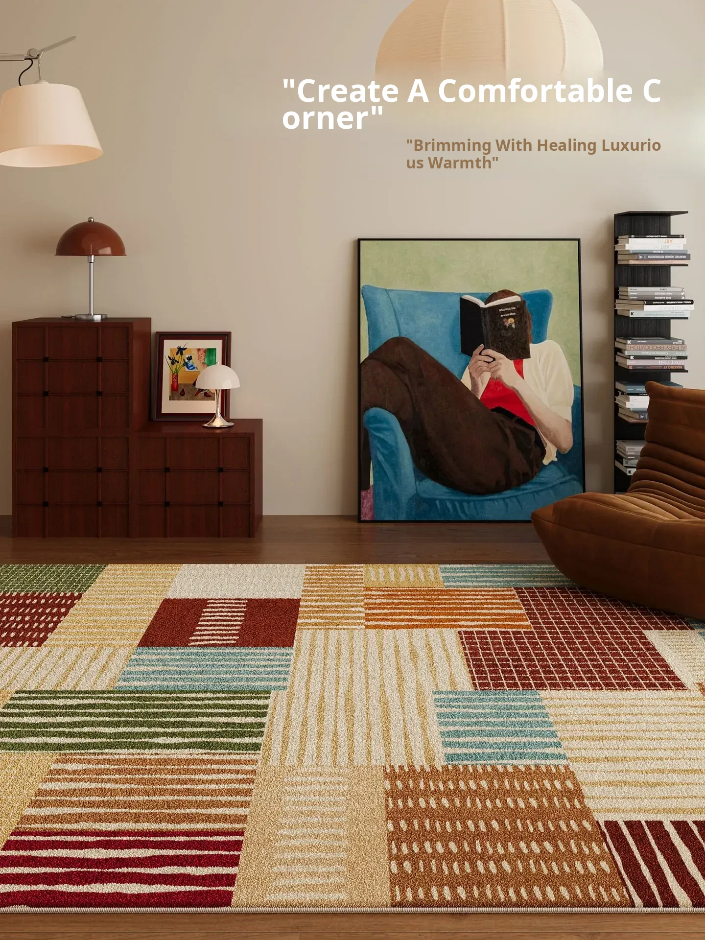 Dopamine Carpet for Living Room – Minimalist Design Area Rug with Waterproof, Low-Maintenance Features – Vintage Colorful Bauhaus Style for Sofa and Coffee Table, Perfect for Bedroom Décor