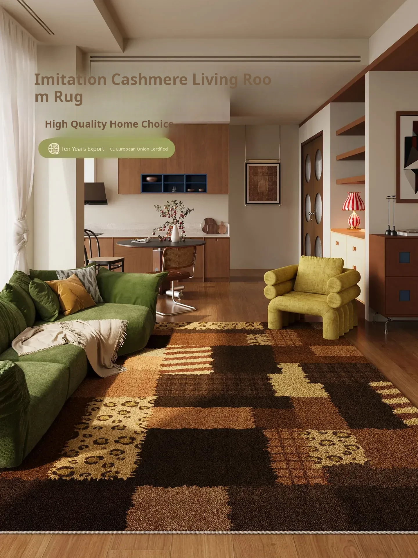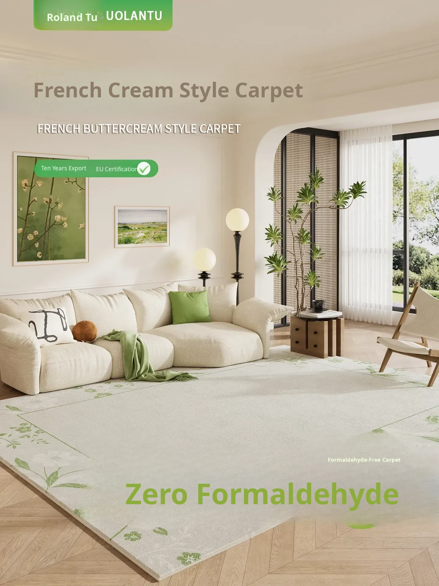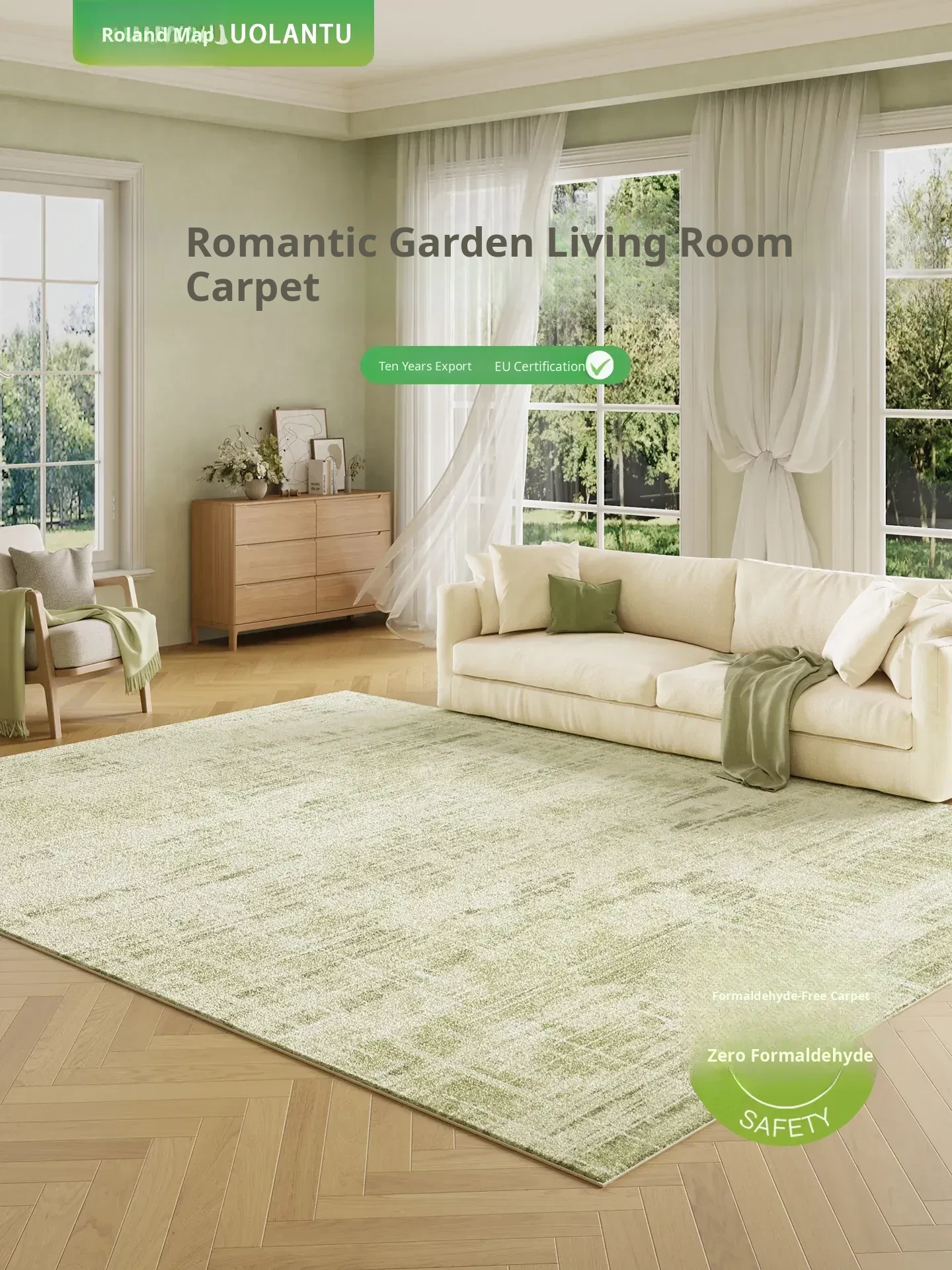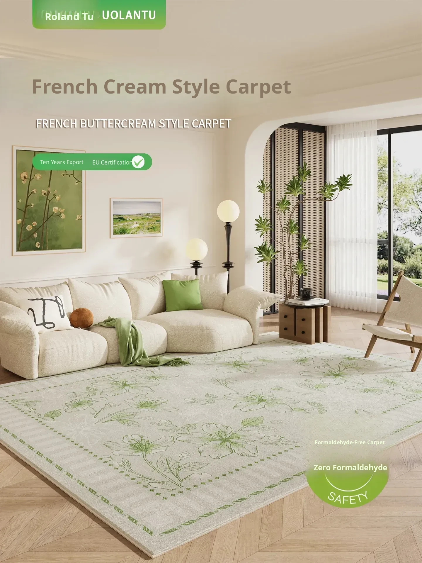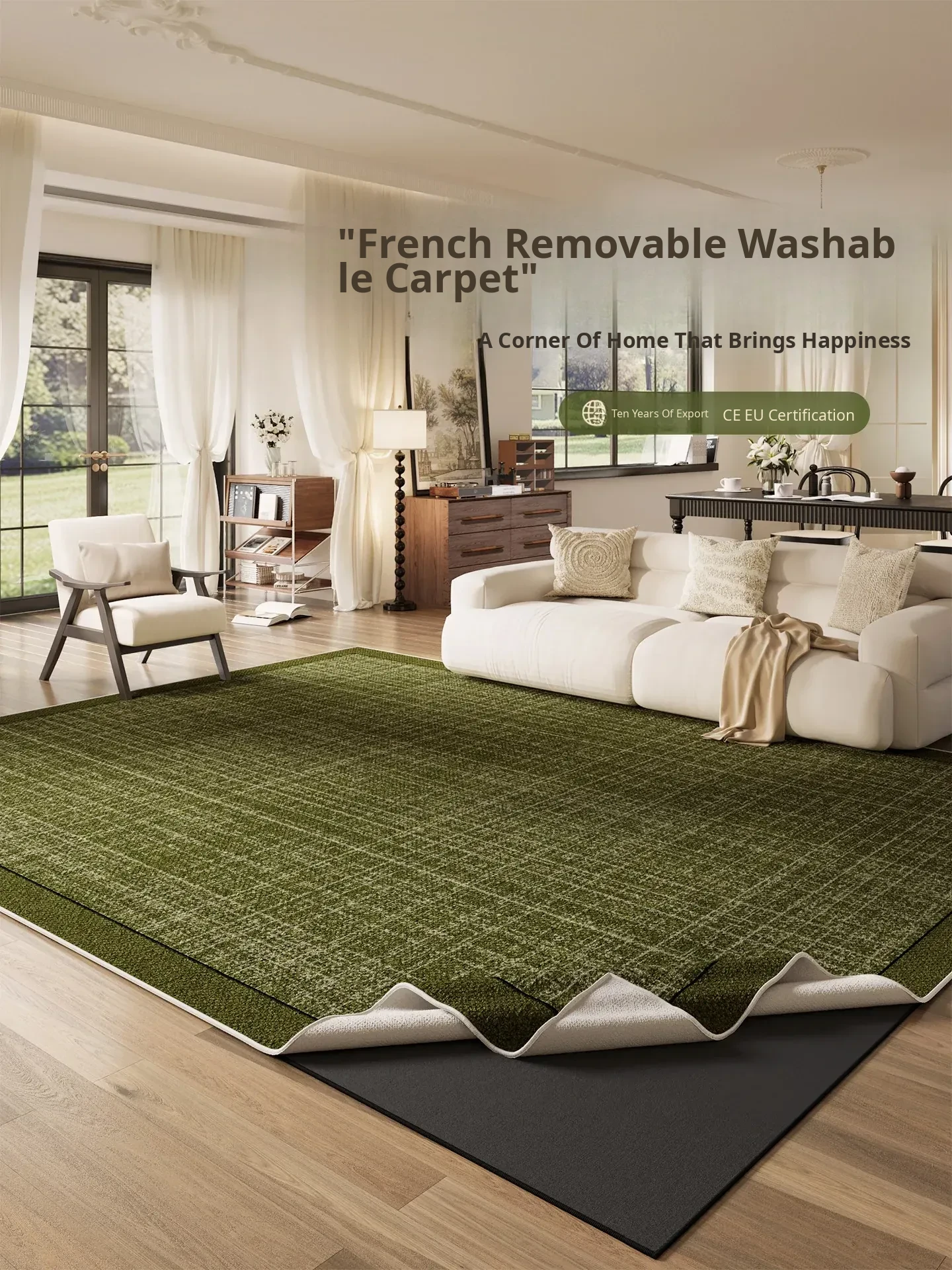 2025 New French Cream Green Living Room Carpet - Waterproof, Stain-Resistant, and Easy to Clean Area Rug for a Luxurious Touch to Your Sofa