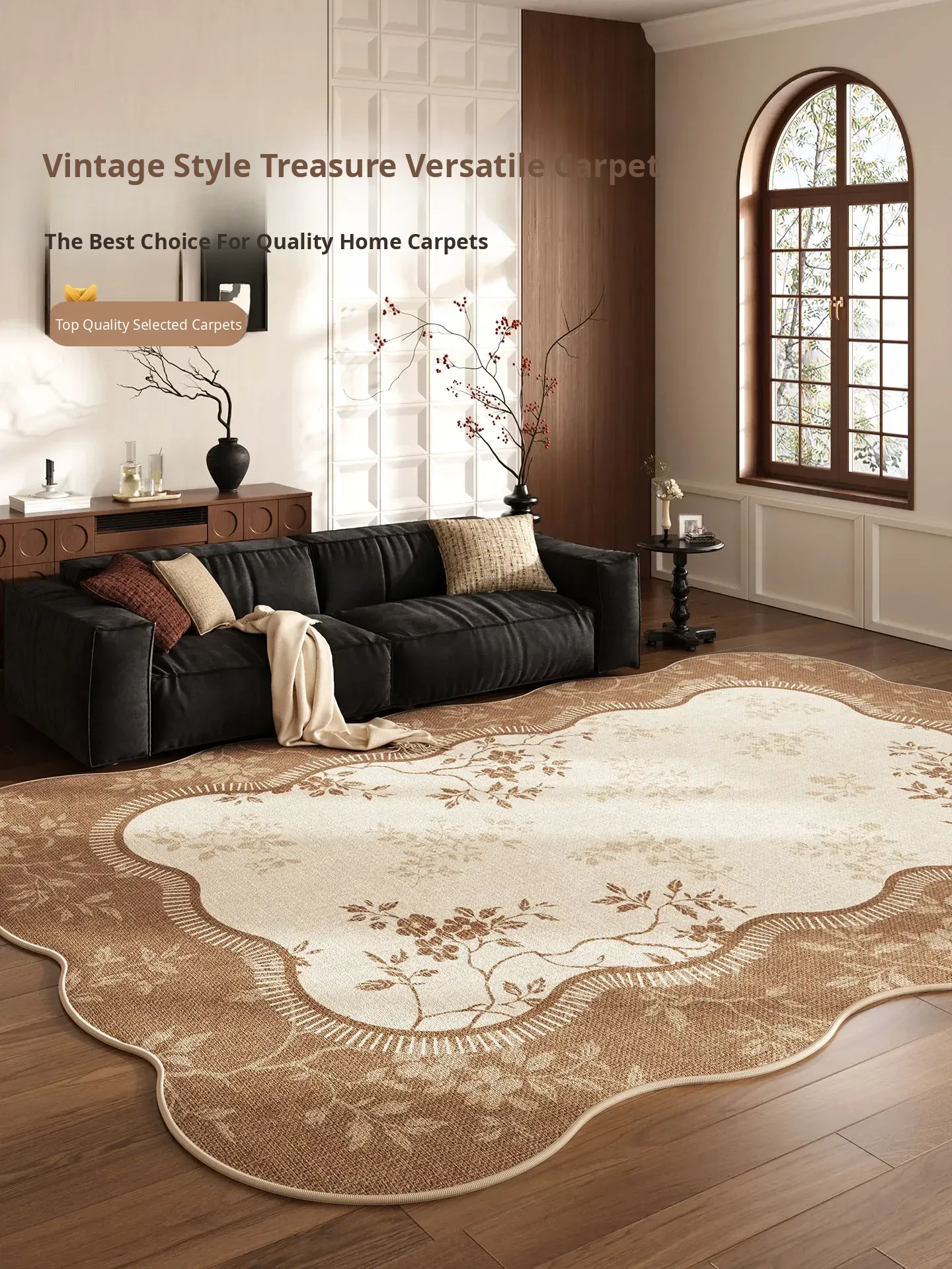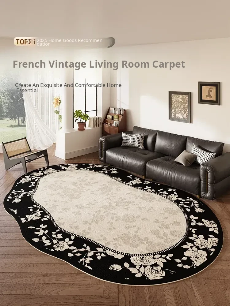 Vintage French-Style Irregular Area Rug for Living Room - Waterproof, Stain-Resistant, Luxurious Carpet for Sofa and Coffee Table - 2025 New Collection for Bedroom