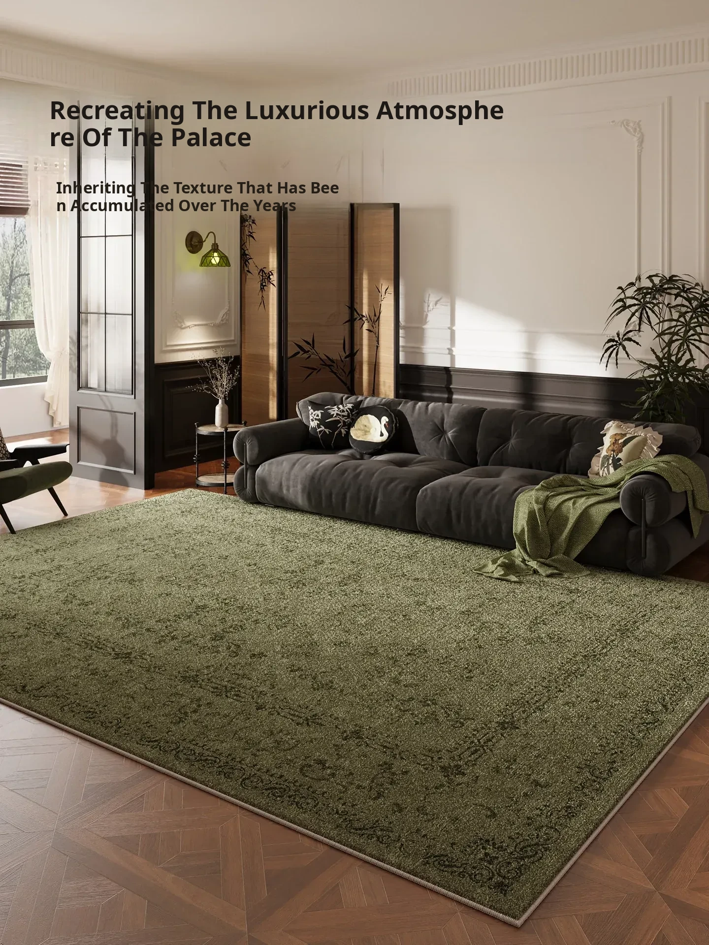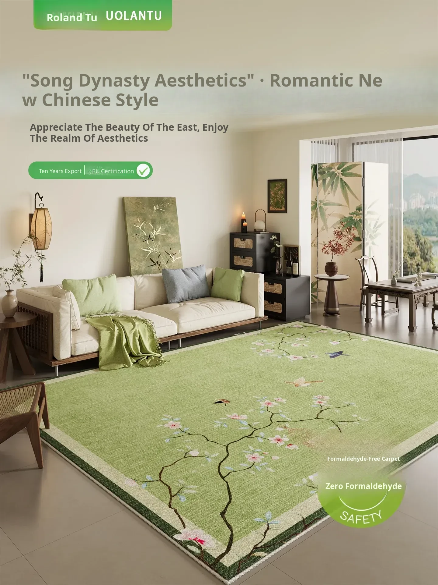 Elegant Green New Chinese Style Carpet - Waterproof and Stain-Resistant Living Room and Bedroom Rug, Effortless Maintenance with Song Dynasty Aesthetics - Perfect for Sofas and Coffee Tables, New Arrival!