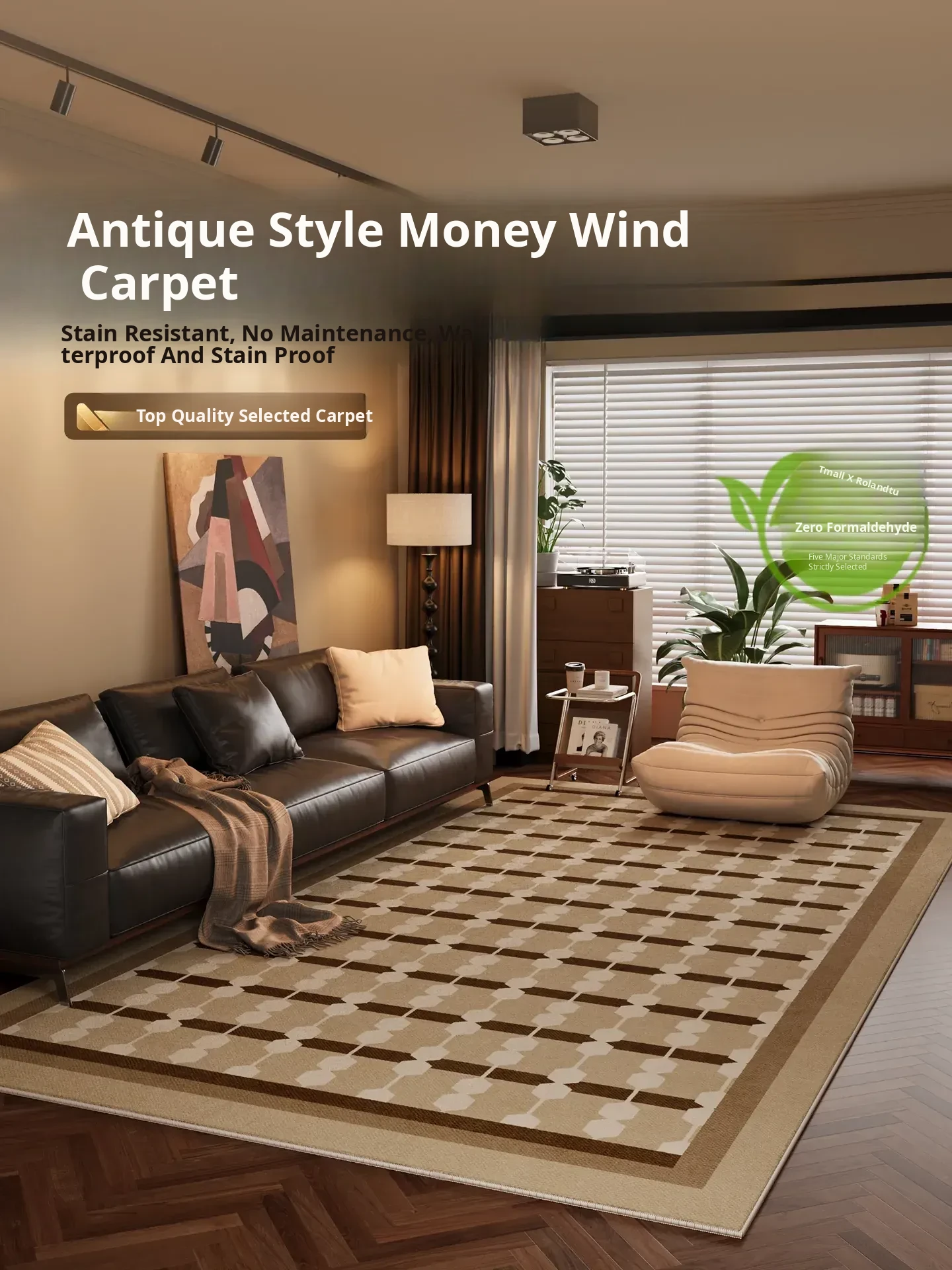 2024 New French Style Living Room Rug - Non-Slip Waterproof and Stain-Resistant Carpet for Bedroom, Sofa, and Coffee Table - Easy to Clean Foot Mat