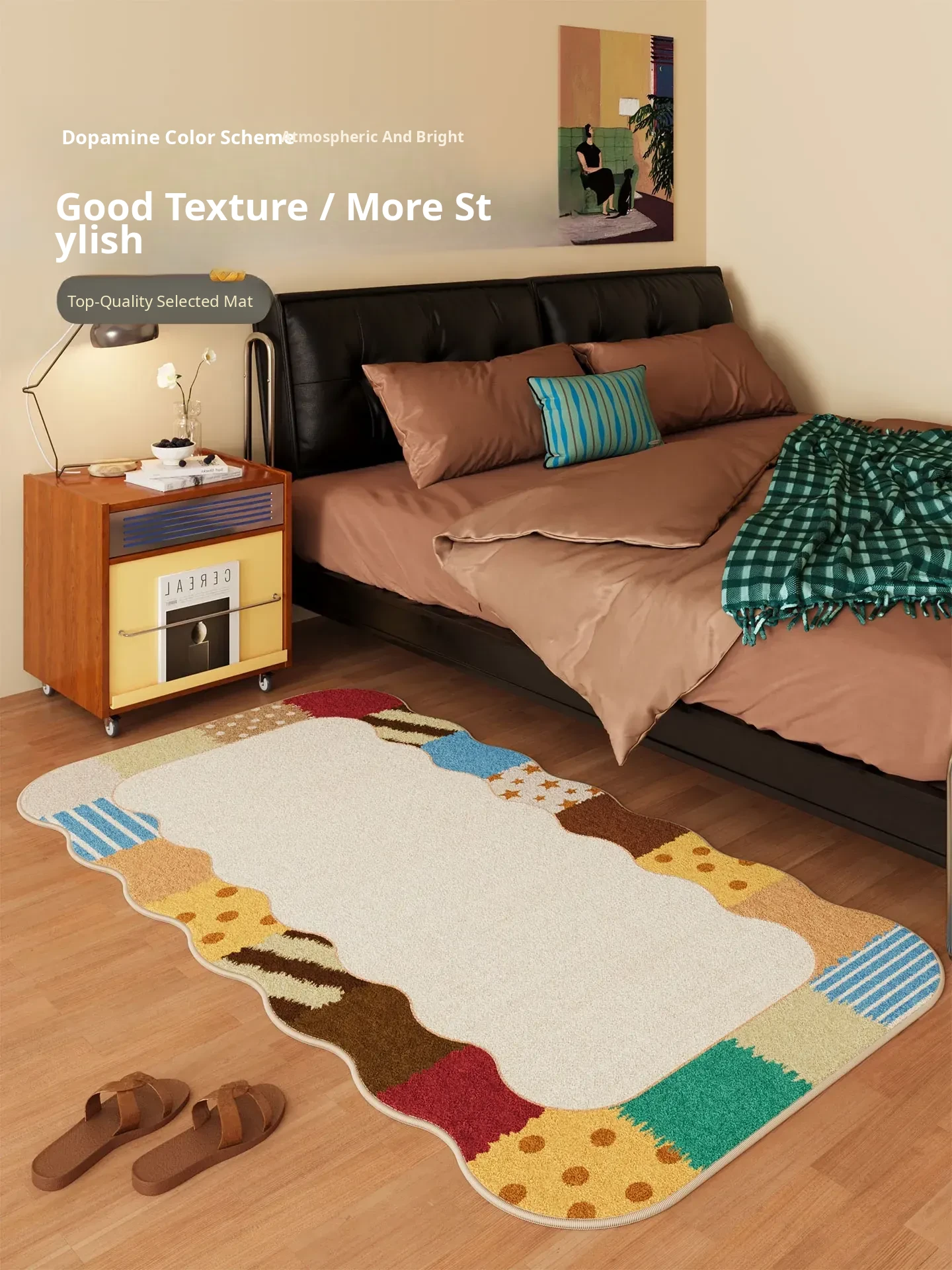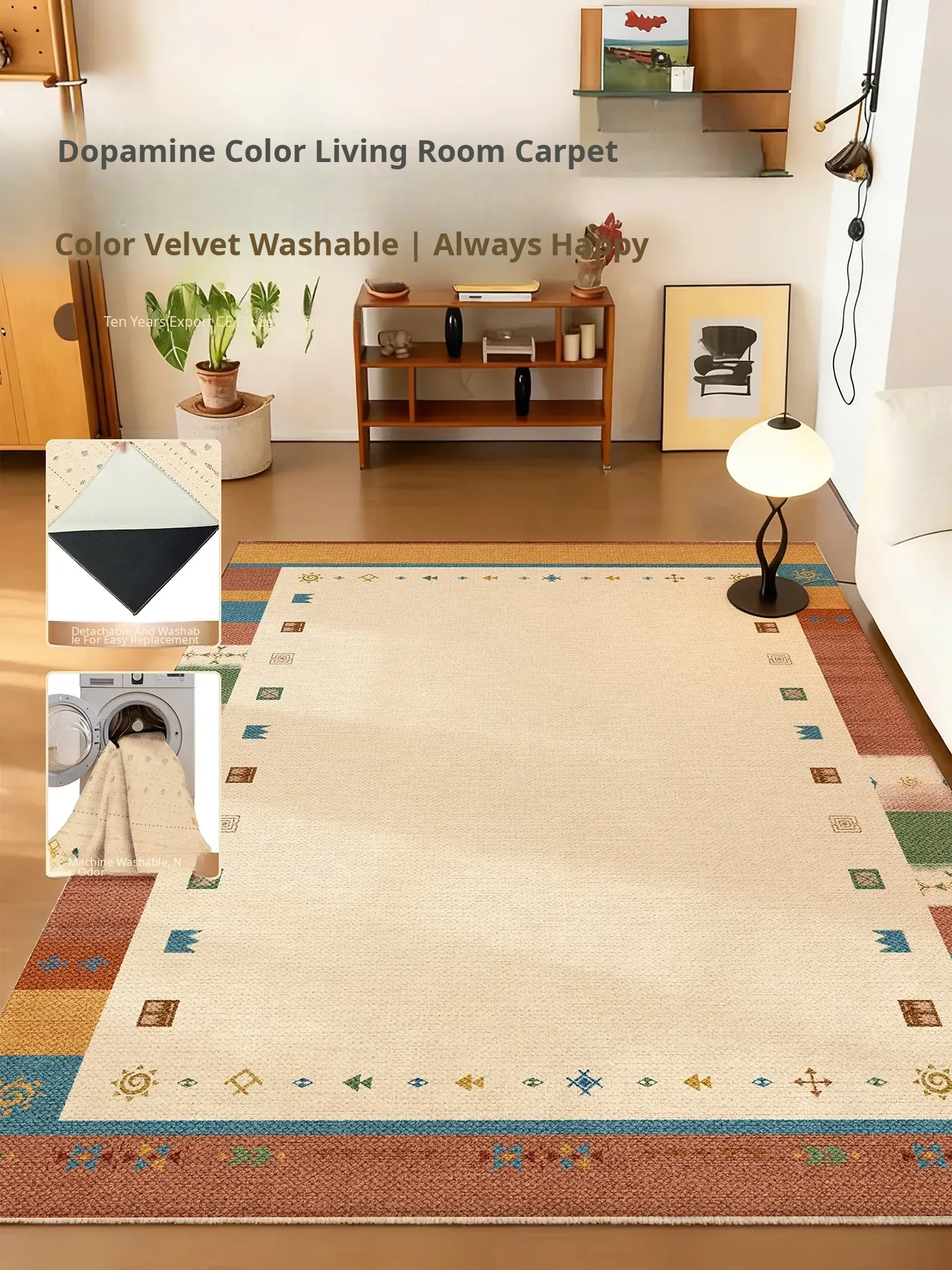 Vintage-Inspired Waterproof Plush Area Rug for Living Room – Colorful Retro Carpet for Winter, Thick Bedroom Mat for Cozy Bedside Comfort