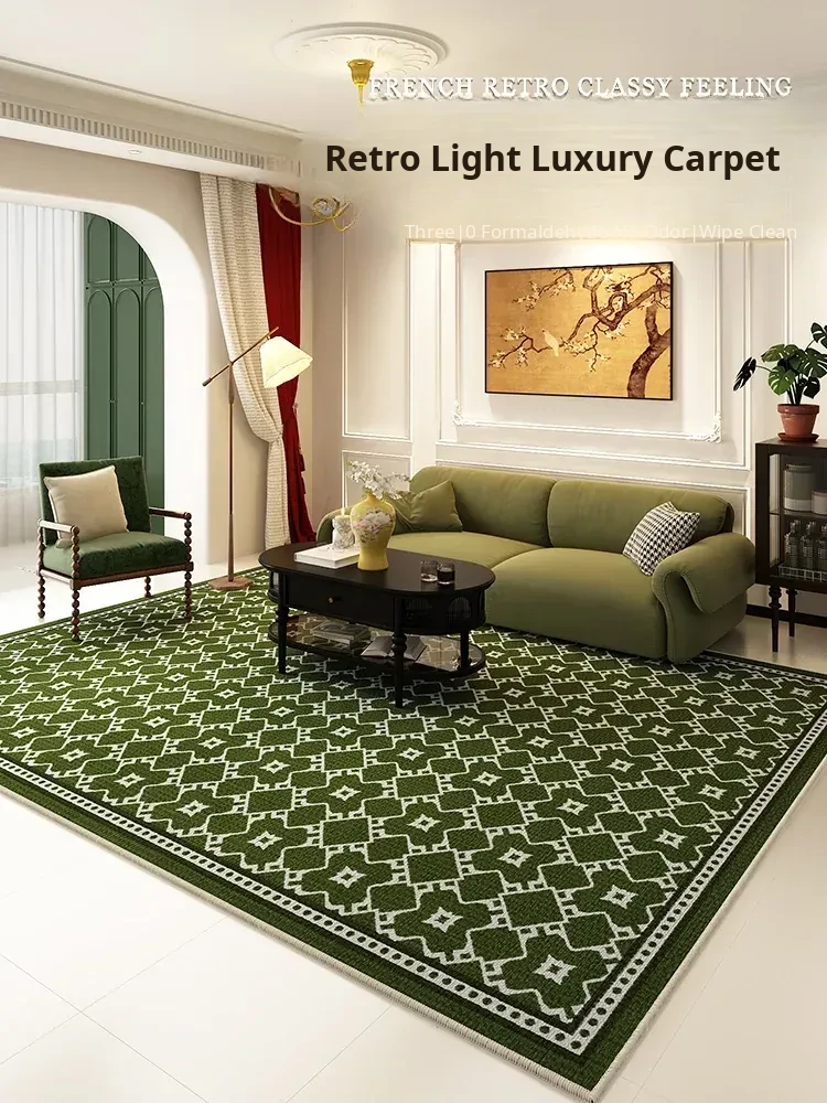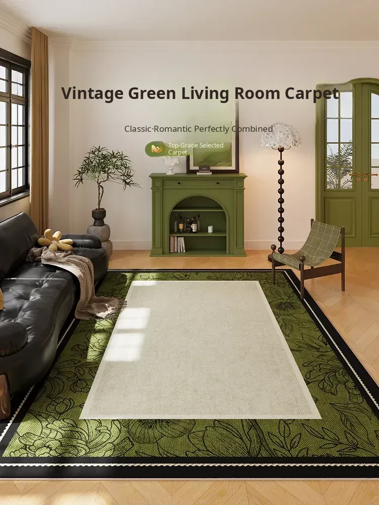 Green Washable Double-Layer Removable Carpet - 2025 New Vintage Style Living Room Sofa Mat, Elevate Your Space with Chic Elegance