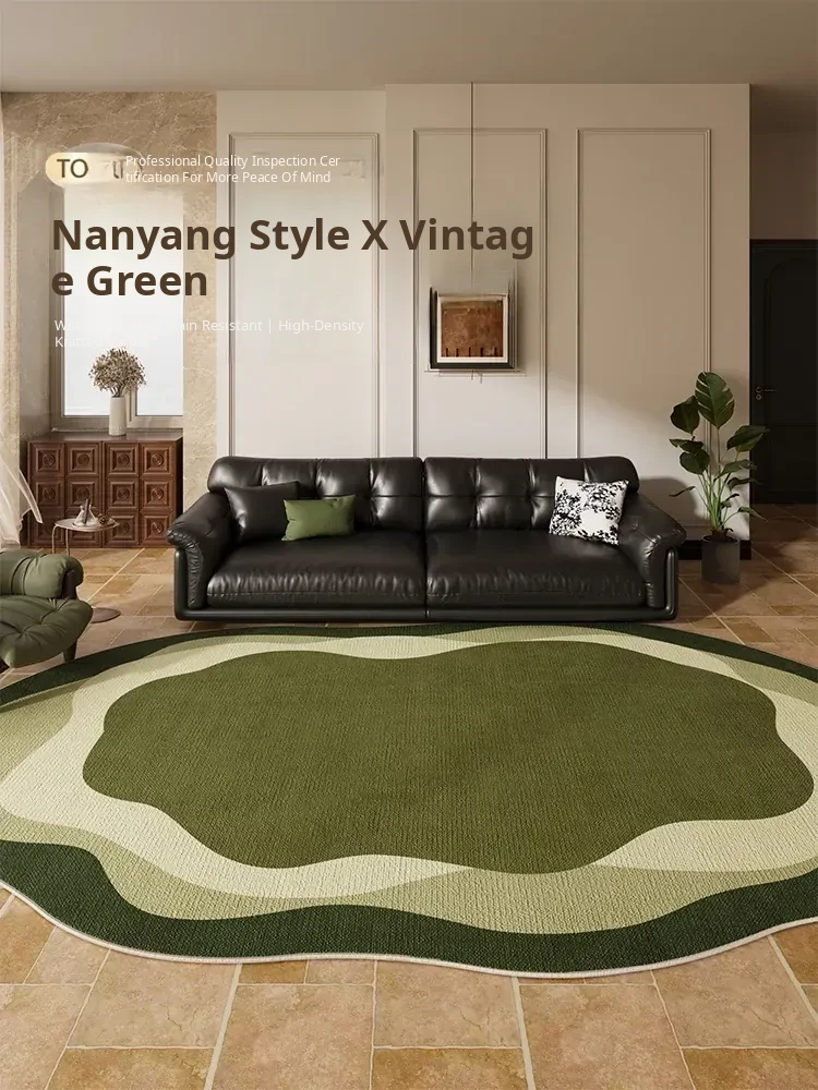 Vintage Style Green Area Rug for Living Room - High-End, Waterproof and Stain-Resistant Bedroom Bedside Mat, Easy Care and Durable, Perfect for Modern Homes