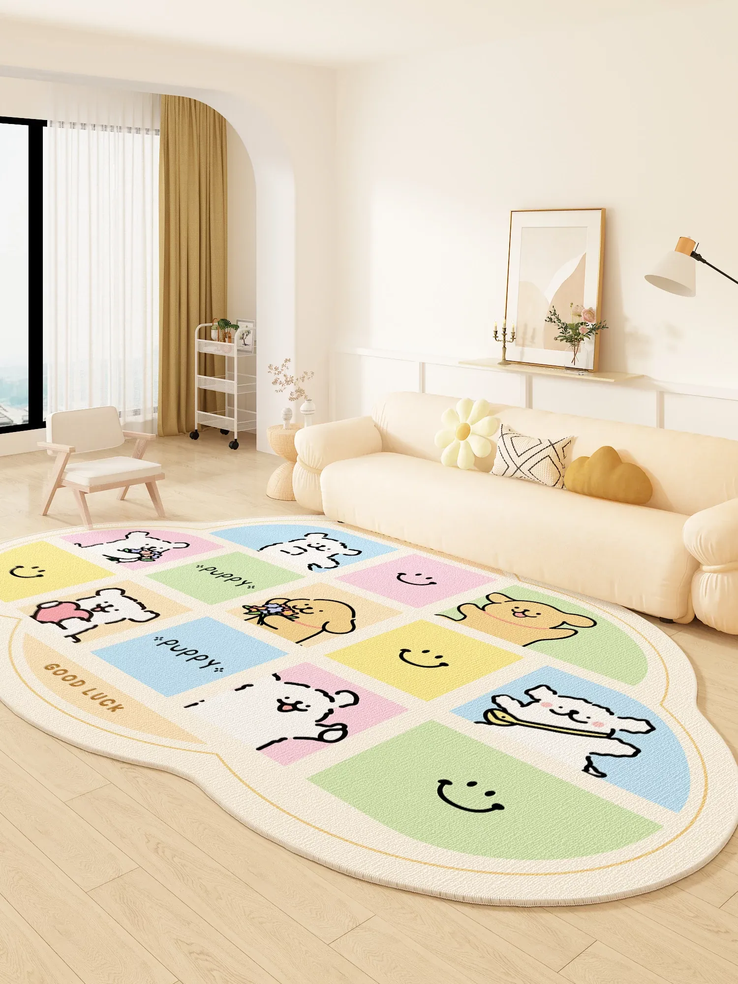 Dopamine Cute Dog Waterproof and Stain-Resistant Area Rug for Living Room and Bedroom - Easy Care Mat for Sofa and Coffee Table - Perfect New Addition to Your Home Decor!