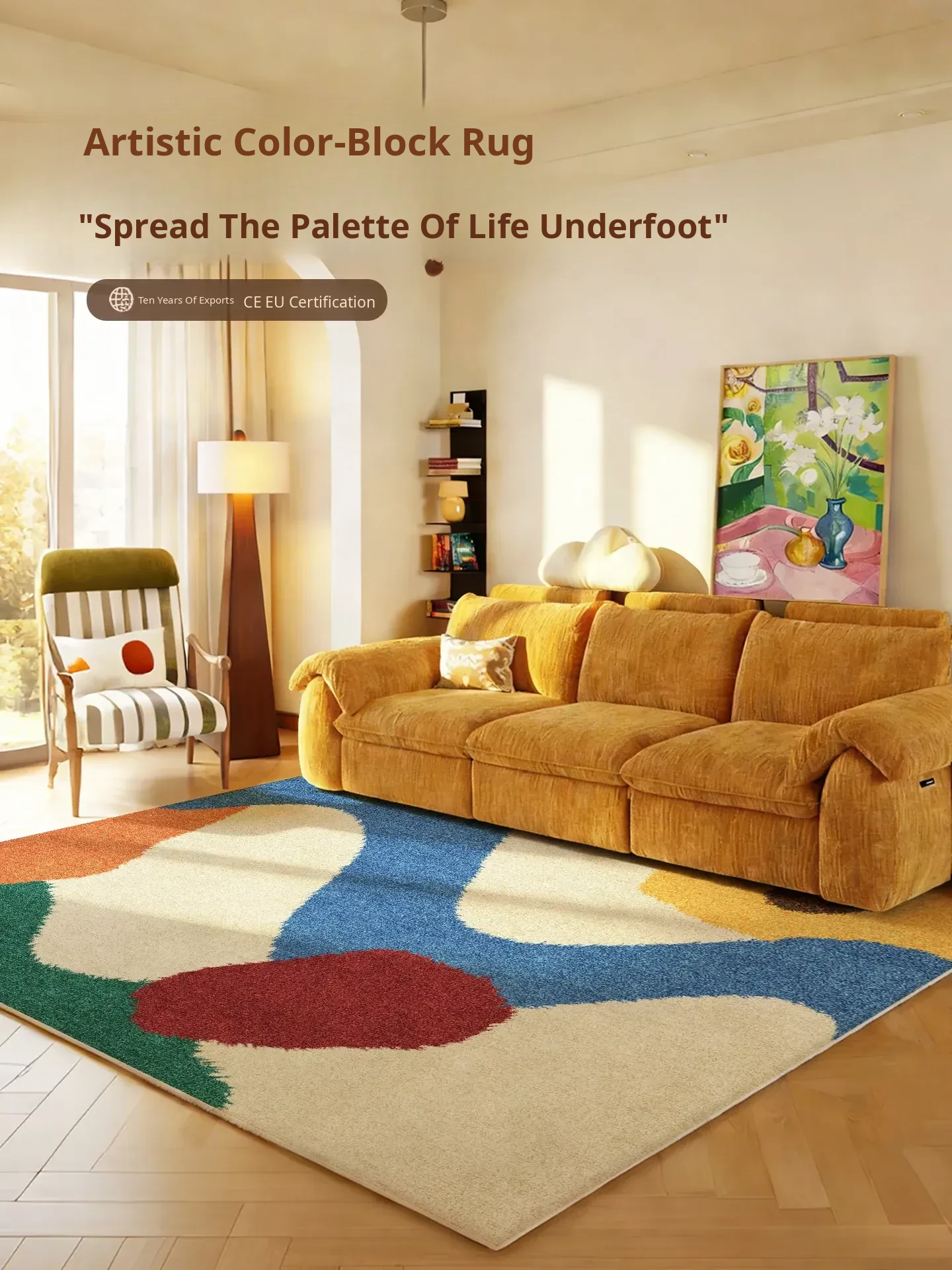 Vibrant Dopamine Carpet for Living Room - Colorful Patchwork Area Rug, Waterproof and Stain-Resistant, No Maintenance Needed, Plush Design for Kids' Rooms, Reading Nooks, and Bedrooms