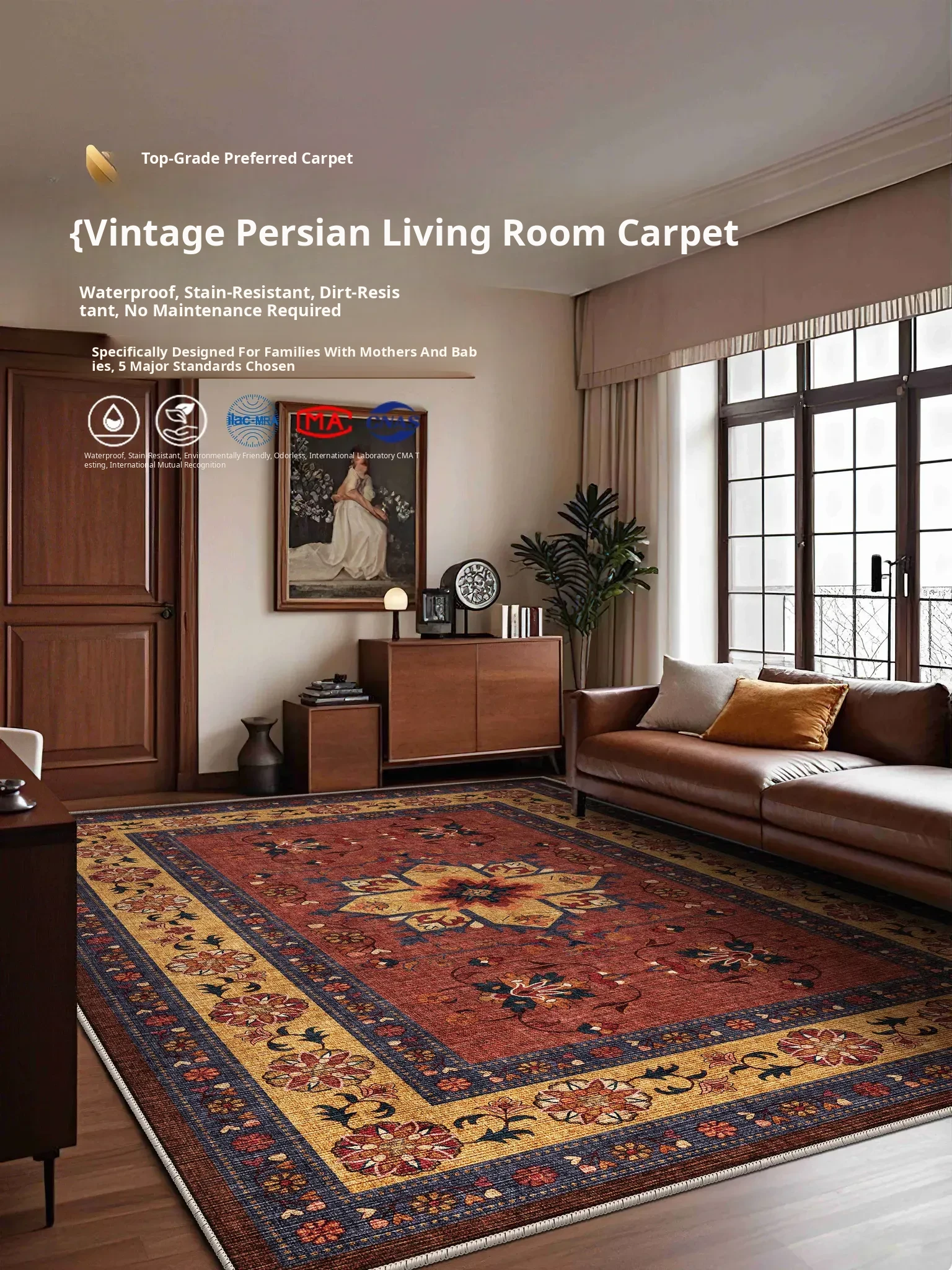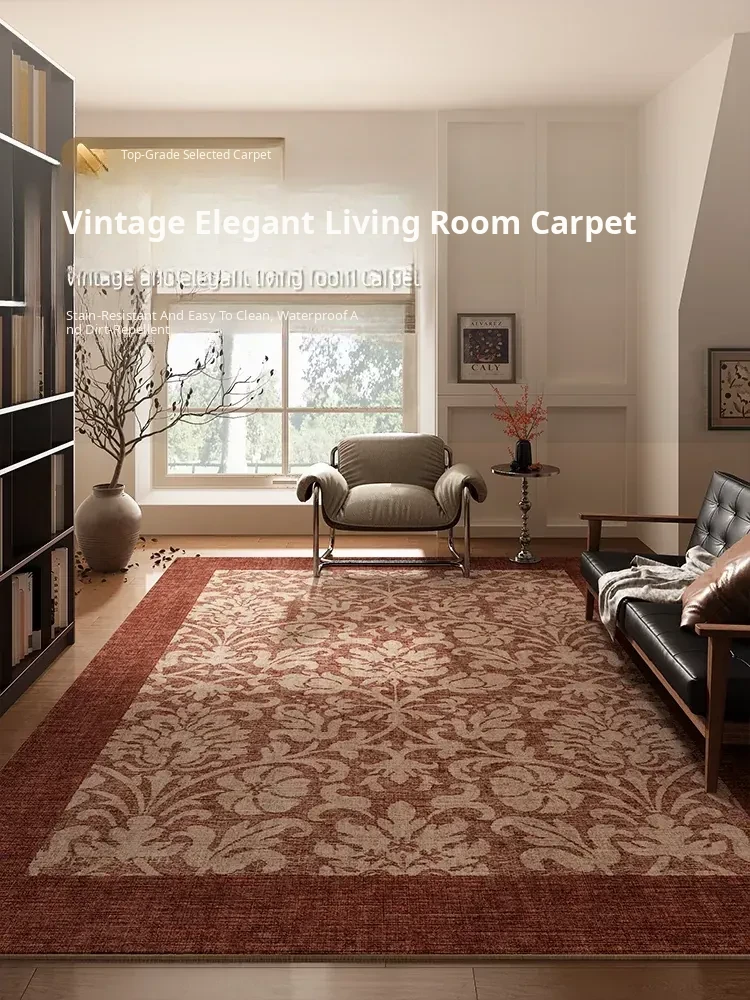 Vintage Retro Living Room Carpet - High-End, Washable, Easy-Clean Sofa Mat, Waterproof and Stain-Resistant, No Maintenance Required for Coffee Table and Seating Areas