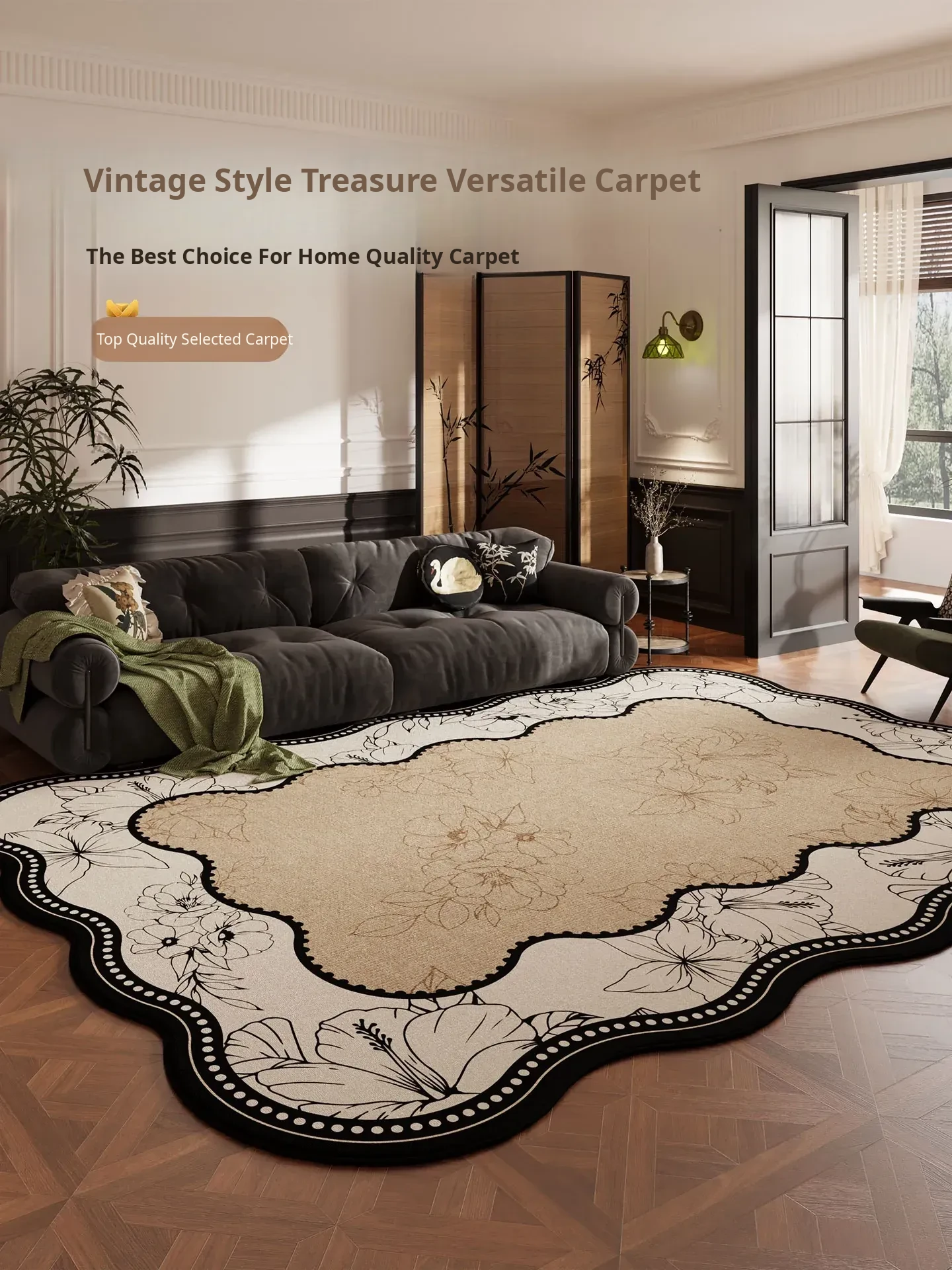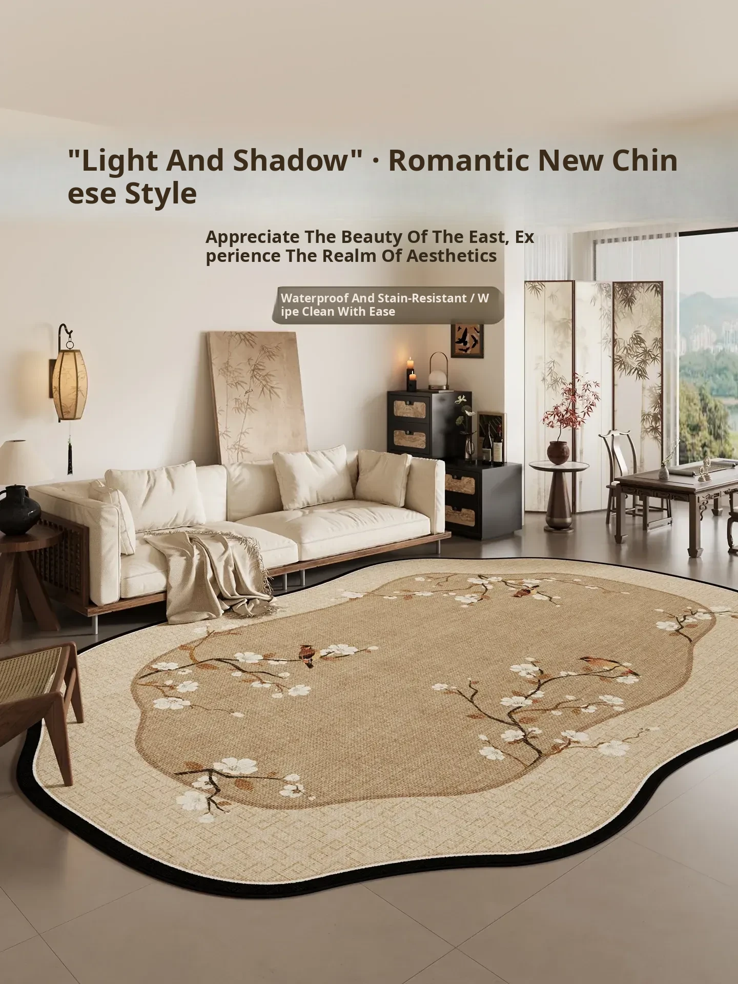 Chinese Style Area Rug for Living Room & Bedroom – Vintage Sofa Mat, Waterproof, Thick, Easy-Care, Stain-Resistant, No Washing Needed, Unique Shape