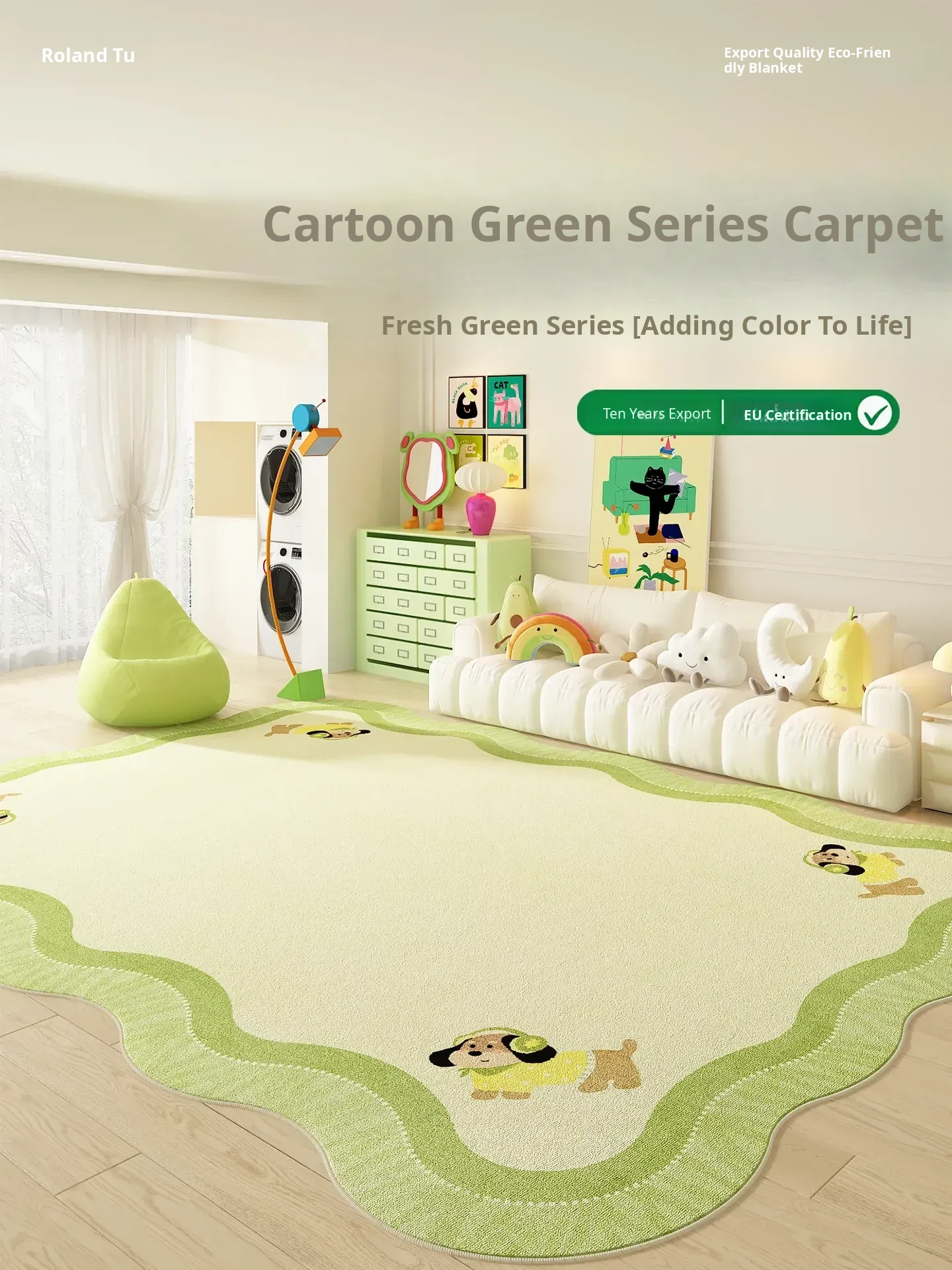 Cartoon Green Area Rug for Living Room - Plush, Waterproof, and Stain-Resistant, Easy to Clean, Ideal for Sofa and Coffee Table, Thickened Unique Shape Bedroom Mat