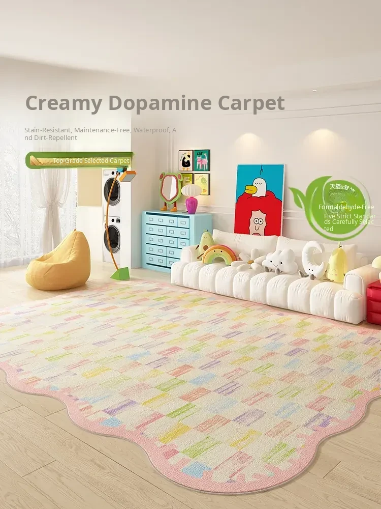 Pink Dopamine Carpet for Living Room and Bedroom – 2026 New Creamy Style, Waterproof and Easy to Clean Area Rug for Sofa, Coffee Table, and Bedside. Perfect for Adding a Touch of Joy to Your Home Décor!