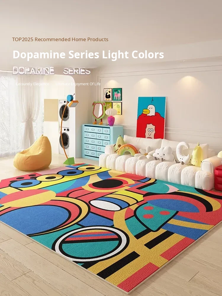 Dopamine Premium Art Carpet for Living Room - Stylish and Colorful, Waterproof and Stain-Resistant, with Plush Anti-Slip Design for Sofa and Coffee Table, Perfect for Bedroom Décor.