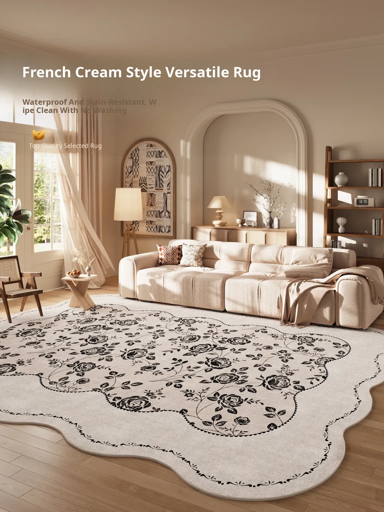 Vintage French-Style Irregular Area Rug for Living Room - Waterproof, Stain-Resistant, Luxurious Carpet for Sofa and Coffee Table - 2025 New Collection for Bedroom