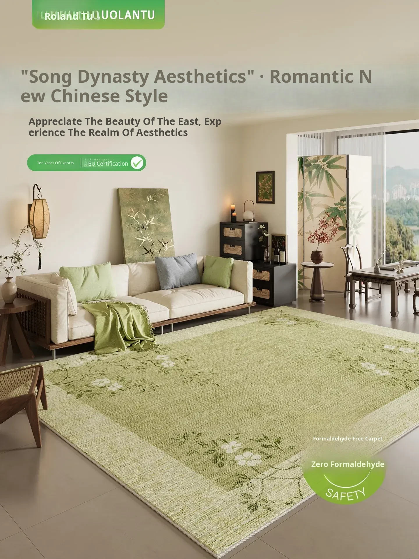 Elegant Green Song Dynasty Aesthetic Sofa Set with Waterproof and Stain-Resistant Coffee Table and Carpet - New Chinese Style Easy-Care Living Room and Bedroom Mat, Perfect for Modern Homes