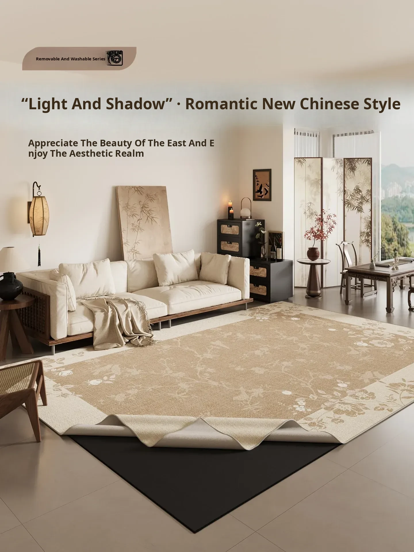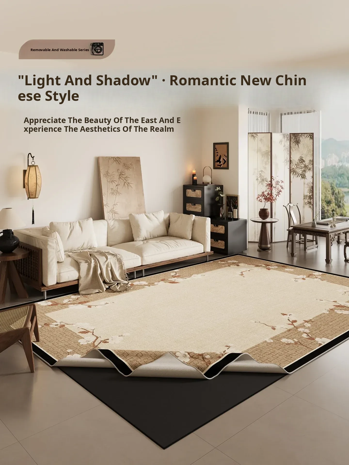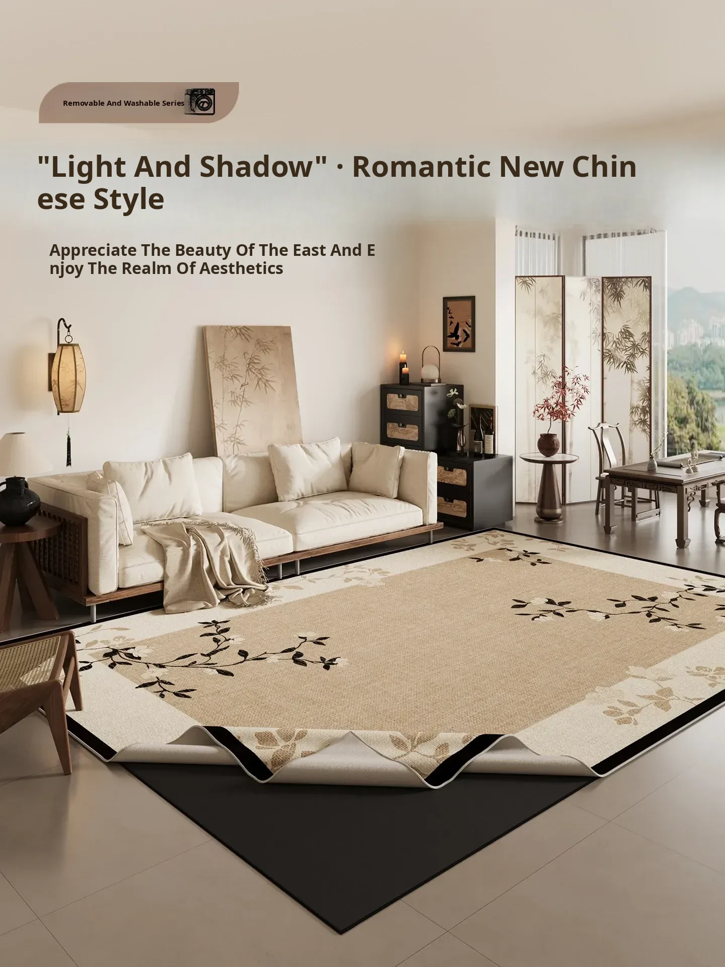 Chinese Style Removable and Washable Area Rug - Perfect for Living Room & Bedroom, Machine Washable, Vintage Sofa Design, Easy Maintenance, 2025 New Arrival