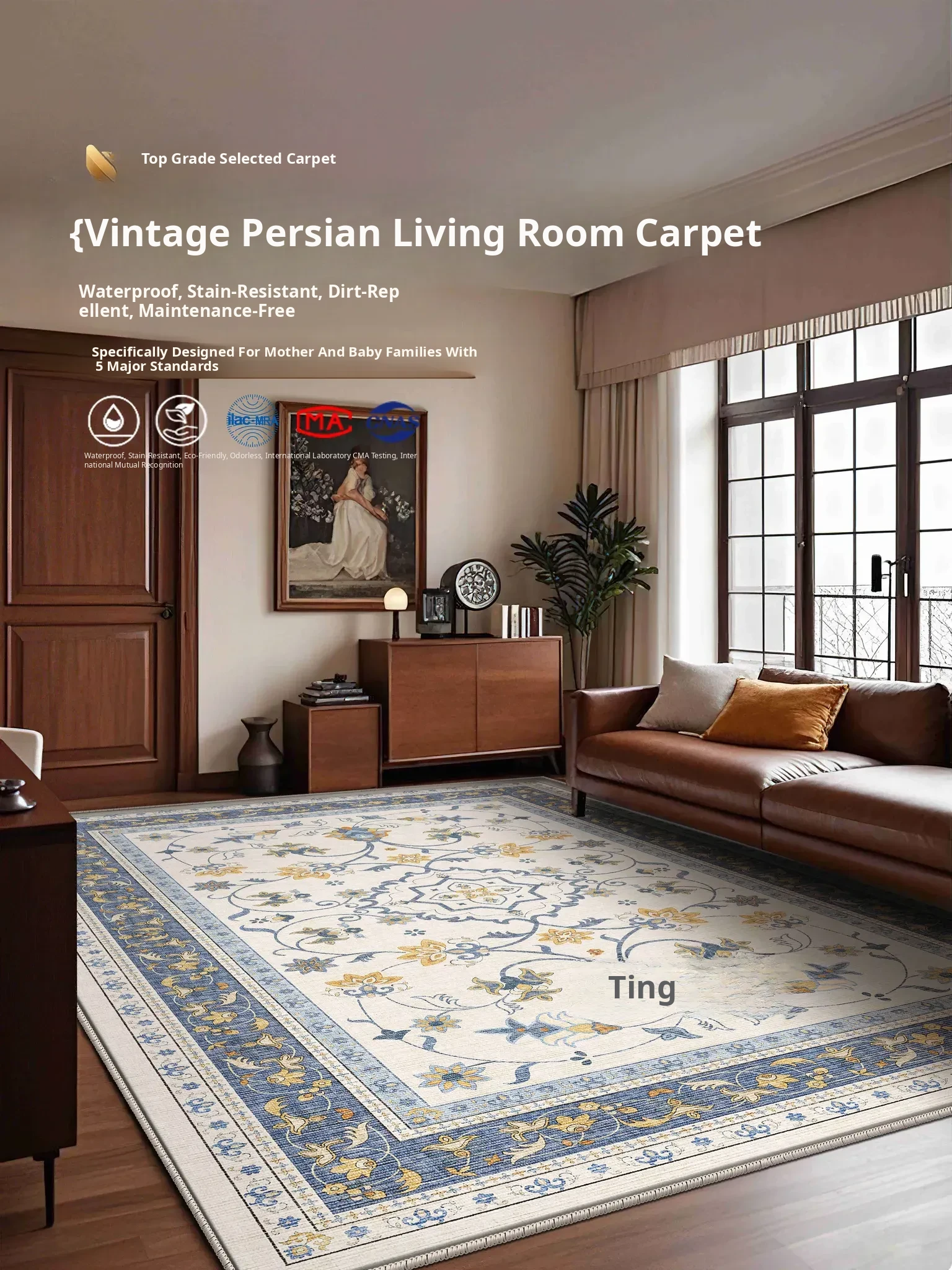 Vintage Persian Living Room Carpet - Luxurious, Easy-Care, Waterproof Area Rug for Sofa and Bedroom, No Washing Needed, Effortless Maintenance.