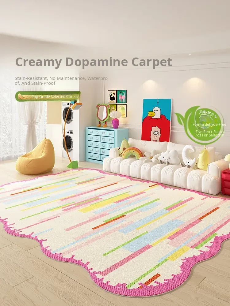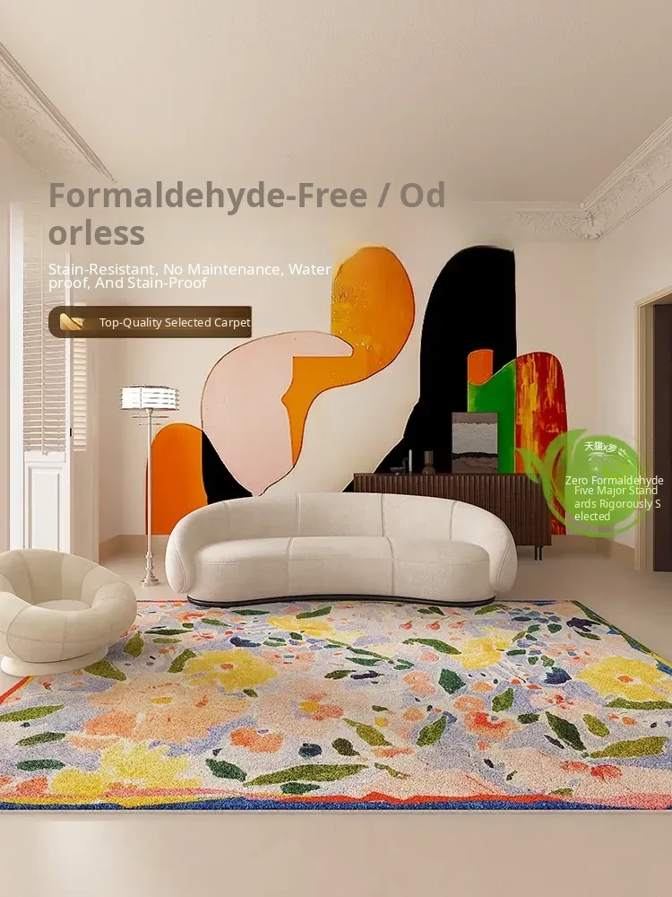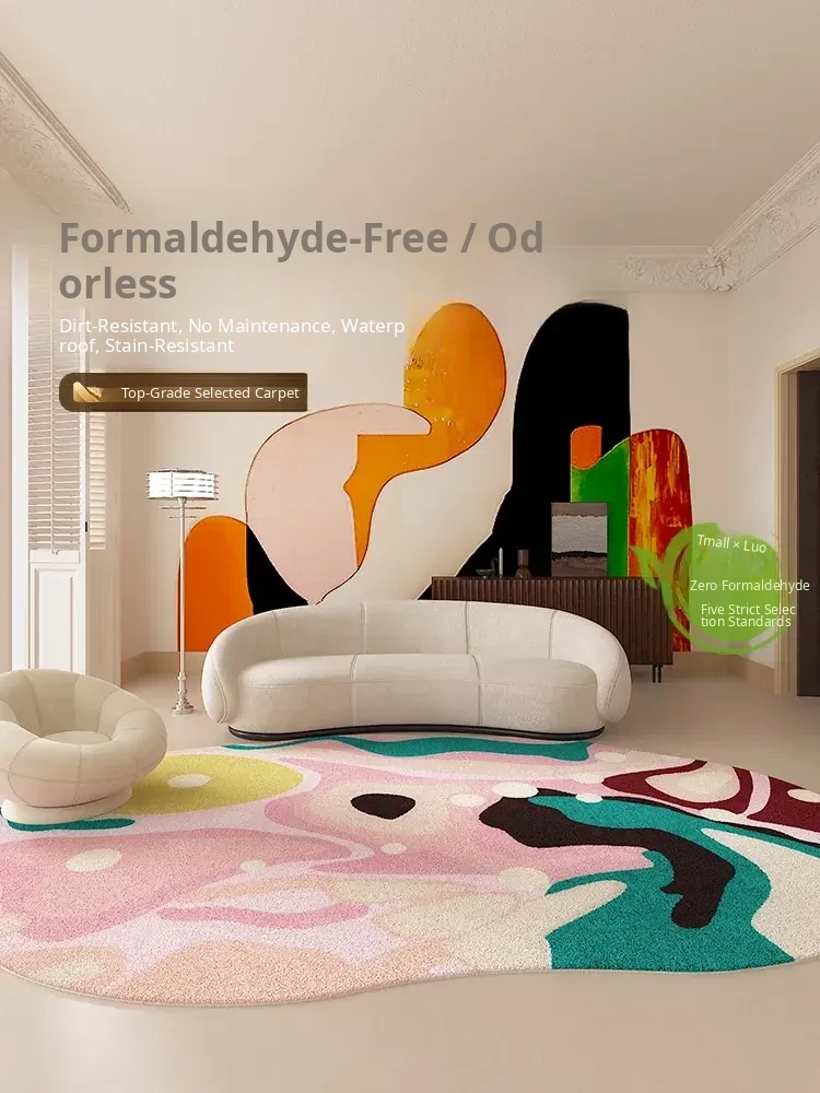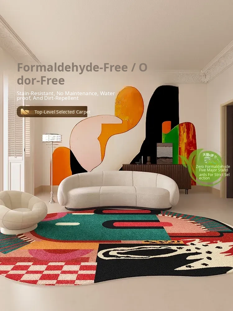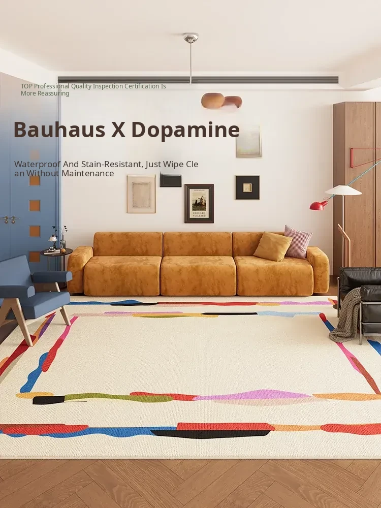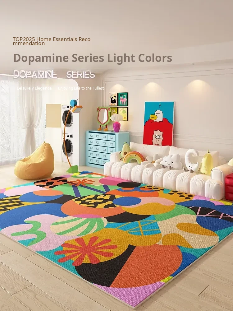 Luxurious Dopamine Art Living Room Carpet - Colorful, Waterproof, Stain-Resistant, Soft Plush Rug for Sofa and Coffee Table, Non-Slip Design, Perfect for Bedrooms - New Arrival!