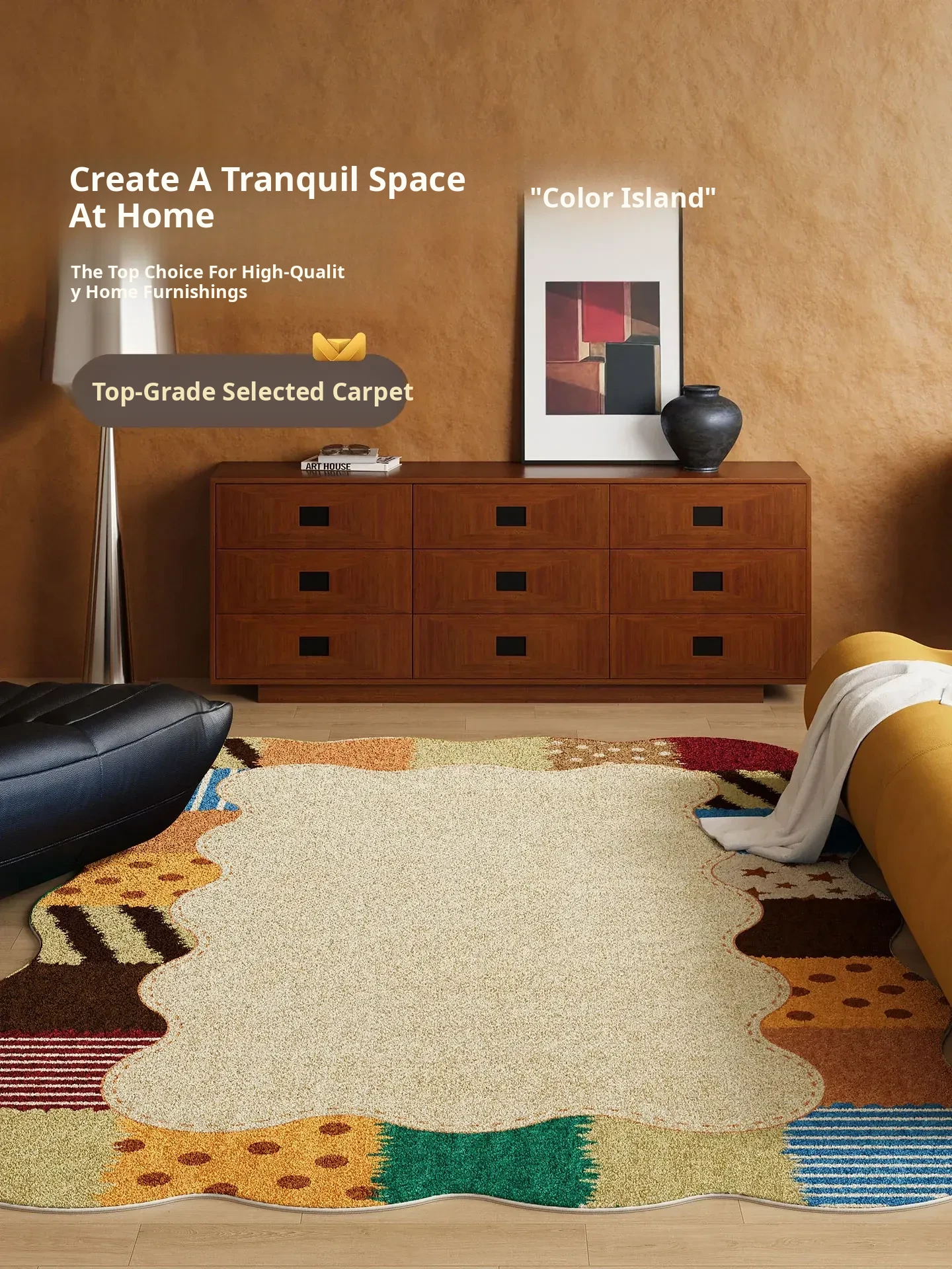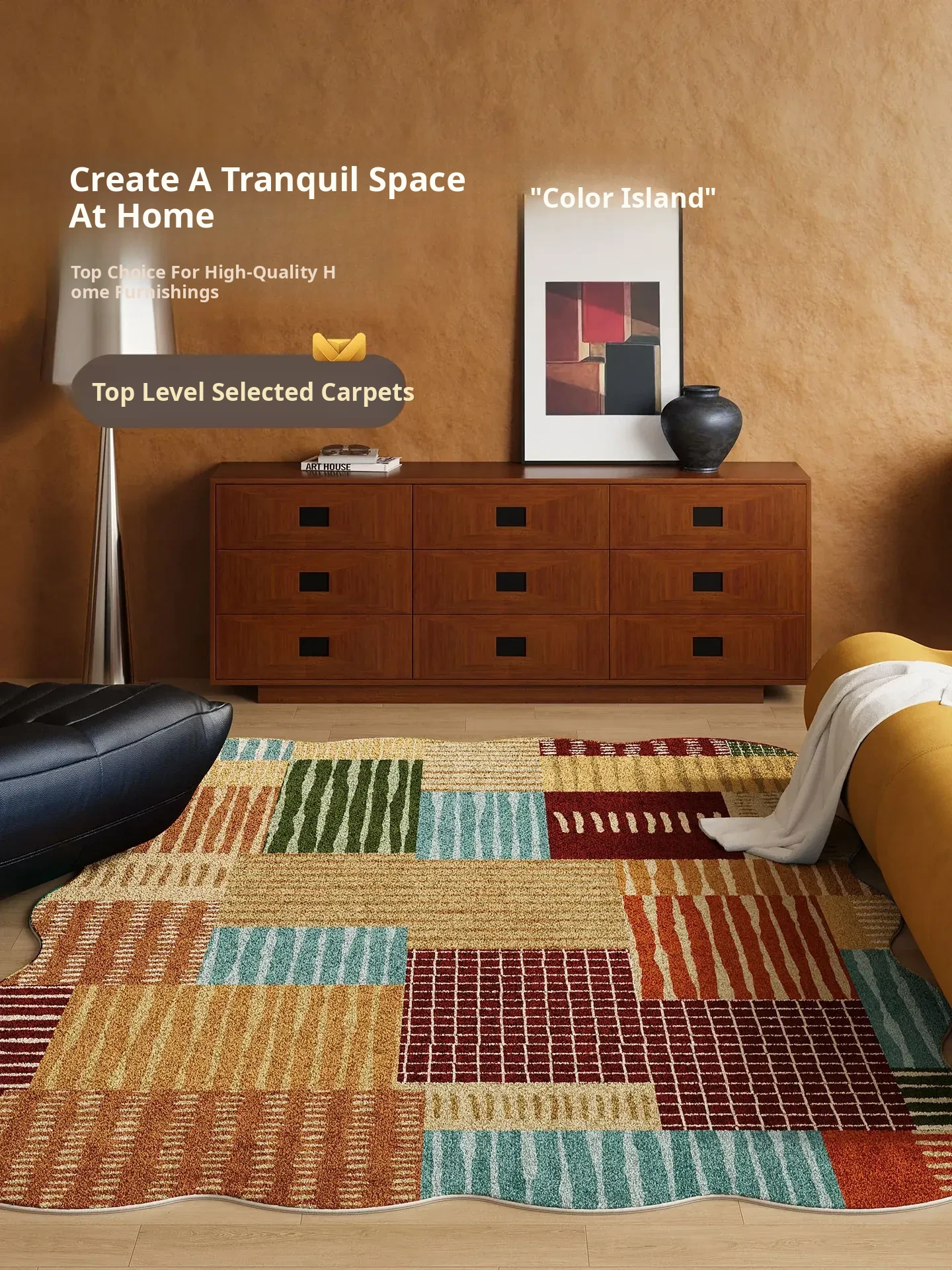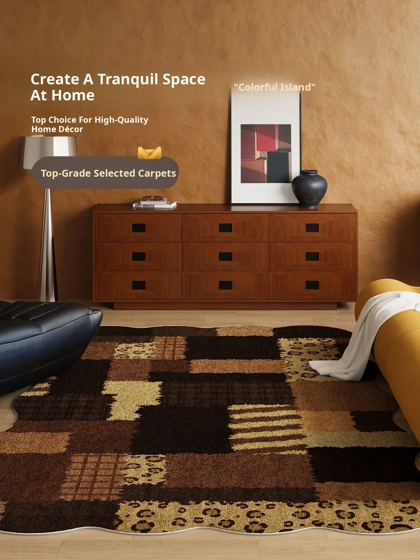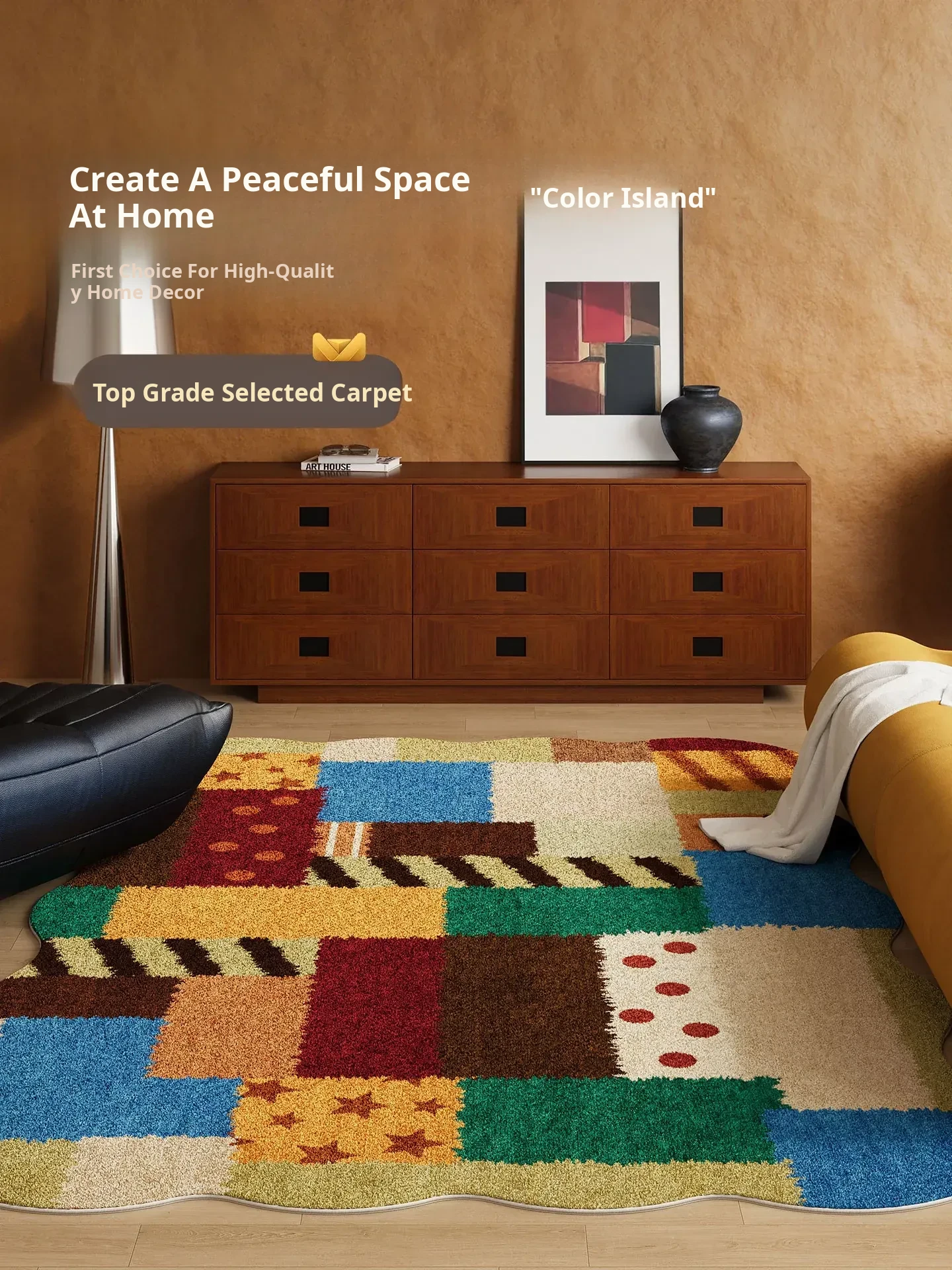 Luxurious Dopamine Art Living Room Carpet - Colorful, Waterproof, Stain-Resistant, Soft Plush Rug for Sofa and Coffee Table, Non-Slip Design, Perfect for Bedrooms - New Arrival!