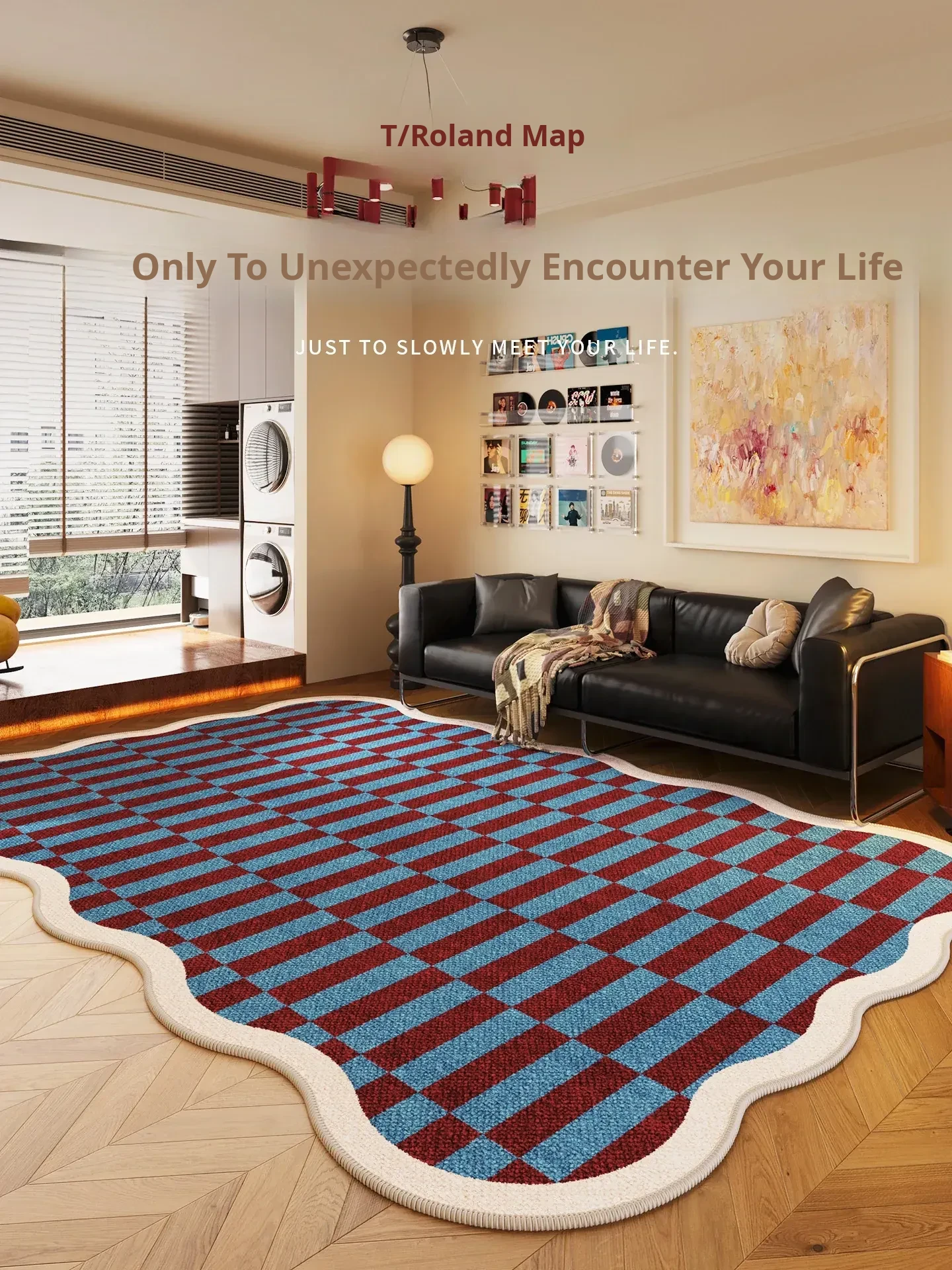 Colorful Minimalist Bauhaus Style Carpet for Living Room and Bedroom - Waterproof, Stain-Resistant, No Maintenance Needed, Perfect for Enhancing Your Space with a Touch of Dopamine!