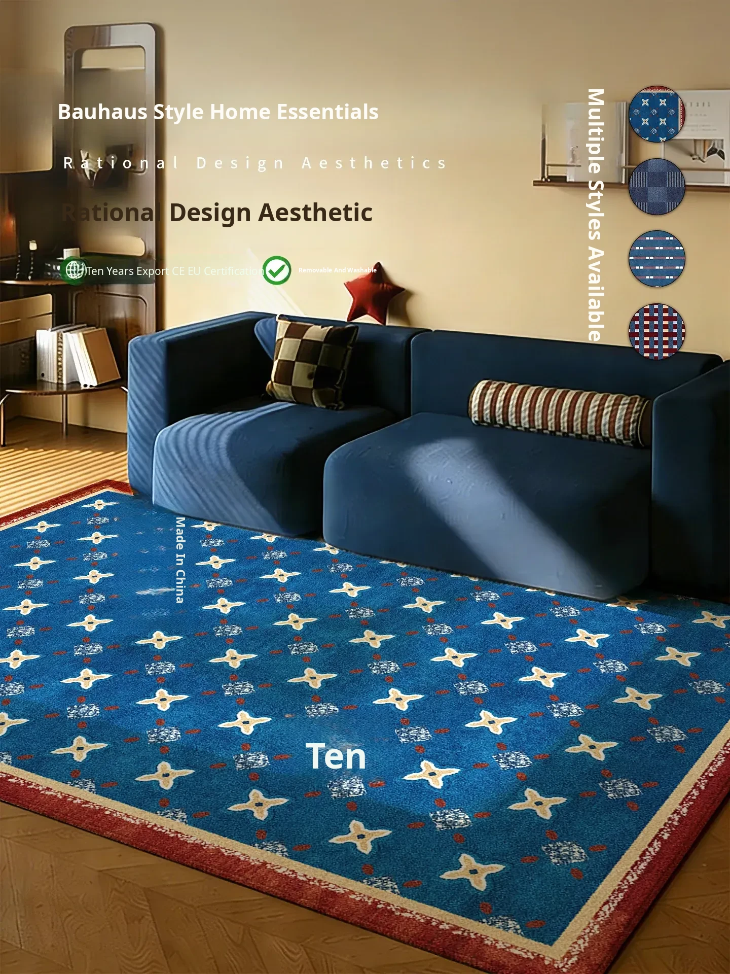 Removable and Washable Carpet - 2025 New Vintage Style Area Rug for Living Room, Sofa, Coffee Table & Bedroom - Machine Washable, Water-Resistant, Perfect for Home Decor