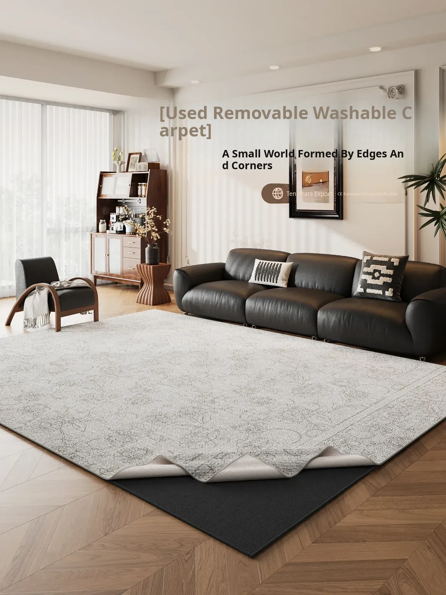 Washable Detachable Rug for Living Room - Vintage Style, Double-layered Carpet for Bedroom and Sofa, Perfect for Large Spaces, Easy to Clean and Maintain