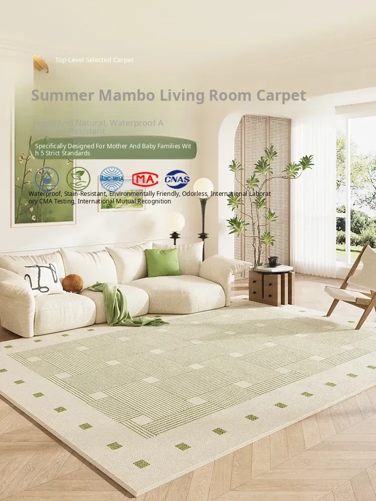 2025 New Luxury Green Cream Waterproof and Stain-Resistant Area Rug for Living Room - Easy to Clean, No Wash Needed, Perfect for Sofa Decor